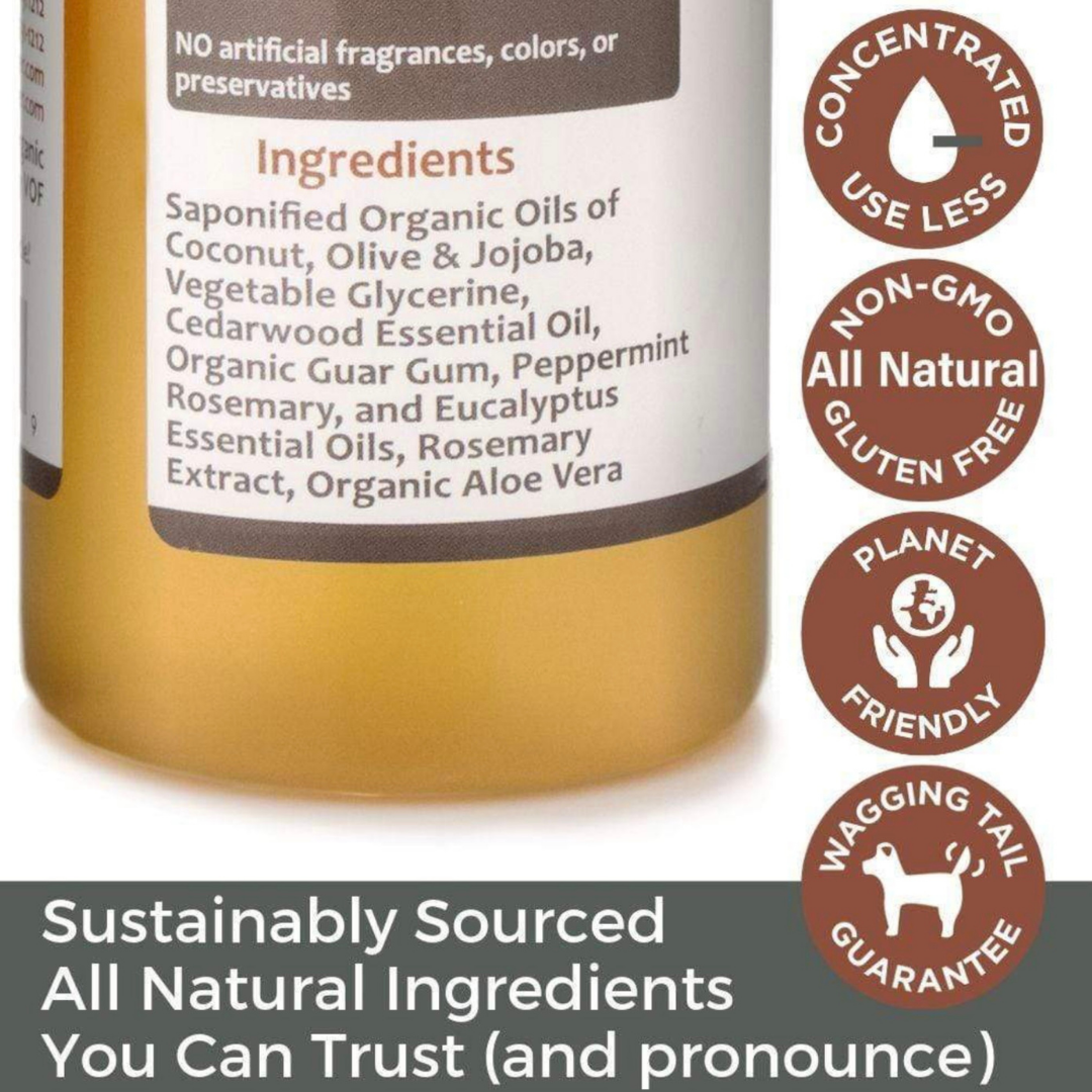 INGREDIENTS: Saponified Organic Coconut, Olive, and Jojoba Oils, Vegetable Glycerine, Cedarwood Essential Oil, Organic Guar Gum, Peppermint Essential Oil, Rosemary Essential Oil, Eucalyptus Essential Oil, Rosemary Extract, Organic Aloe Vera