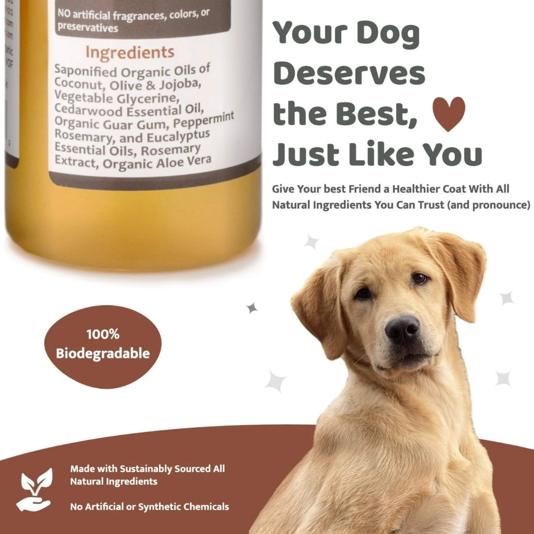 Infused with organic coconut, olive, and jojoba oils, this shampoo moisturizes and nourishes the skin, leaving your dog’s coat soft, shiny, and healthy. Cedarwood, peppermint, eucalyptus, and rosemary essential oils provide powerful natural flea and tick support, making this a perfect choice for dogs who need extra protection—without the harsh chemicals.
