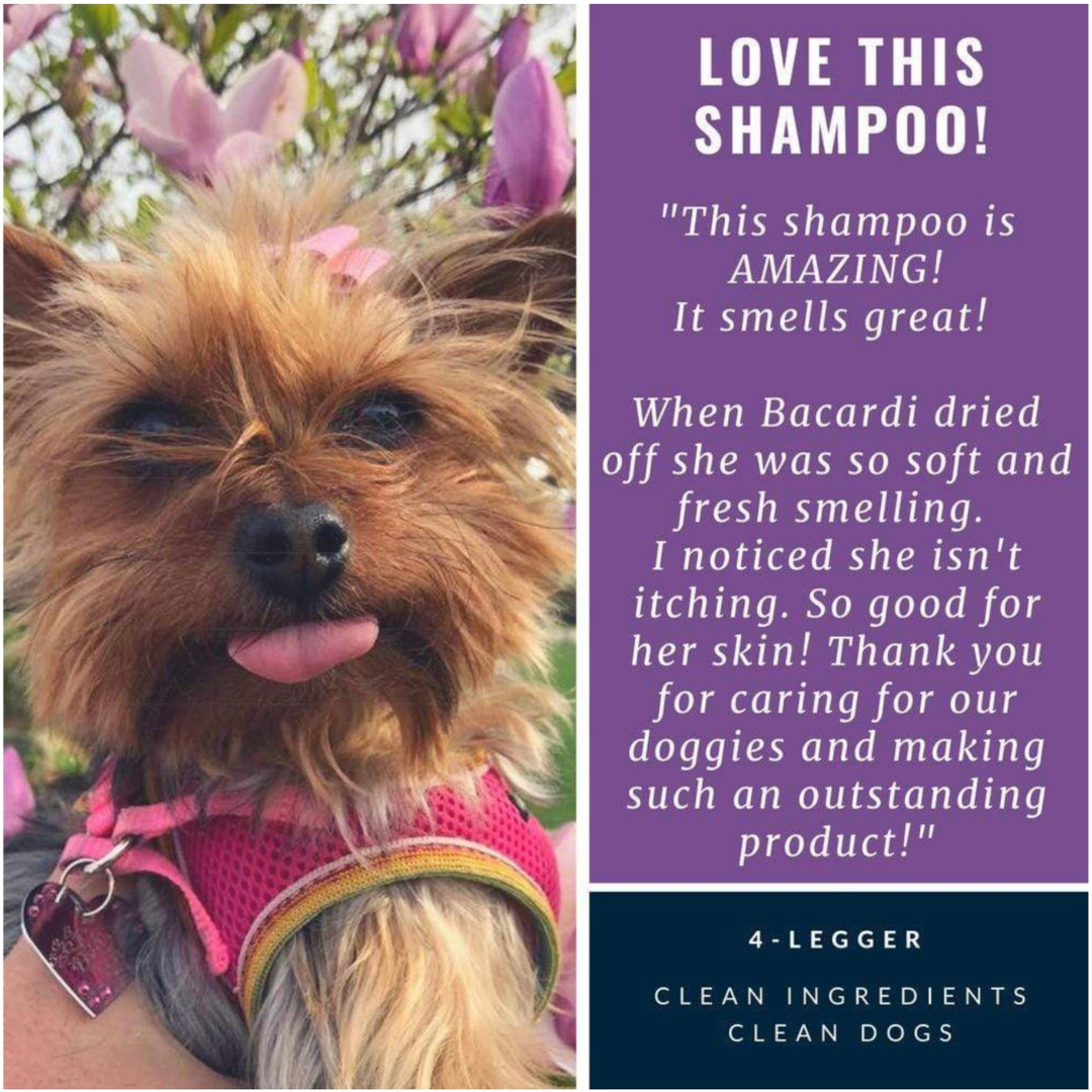 4-Legger is committed to using only the highest-quality, USDA-certified organic ingredients. Free from synthetic chemicals, sulfates, and artificial fragrances, this shampoo ensures that your dog’s skin remains healthy, balanced, and irritation-free. It’s a perfect choice for dogs with sensitive skin, allergies, or frequent irritations.