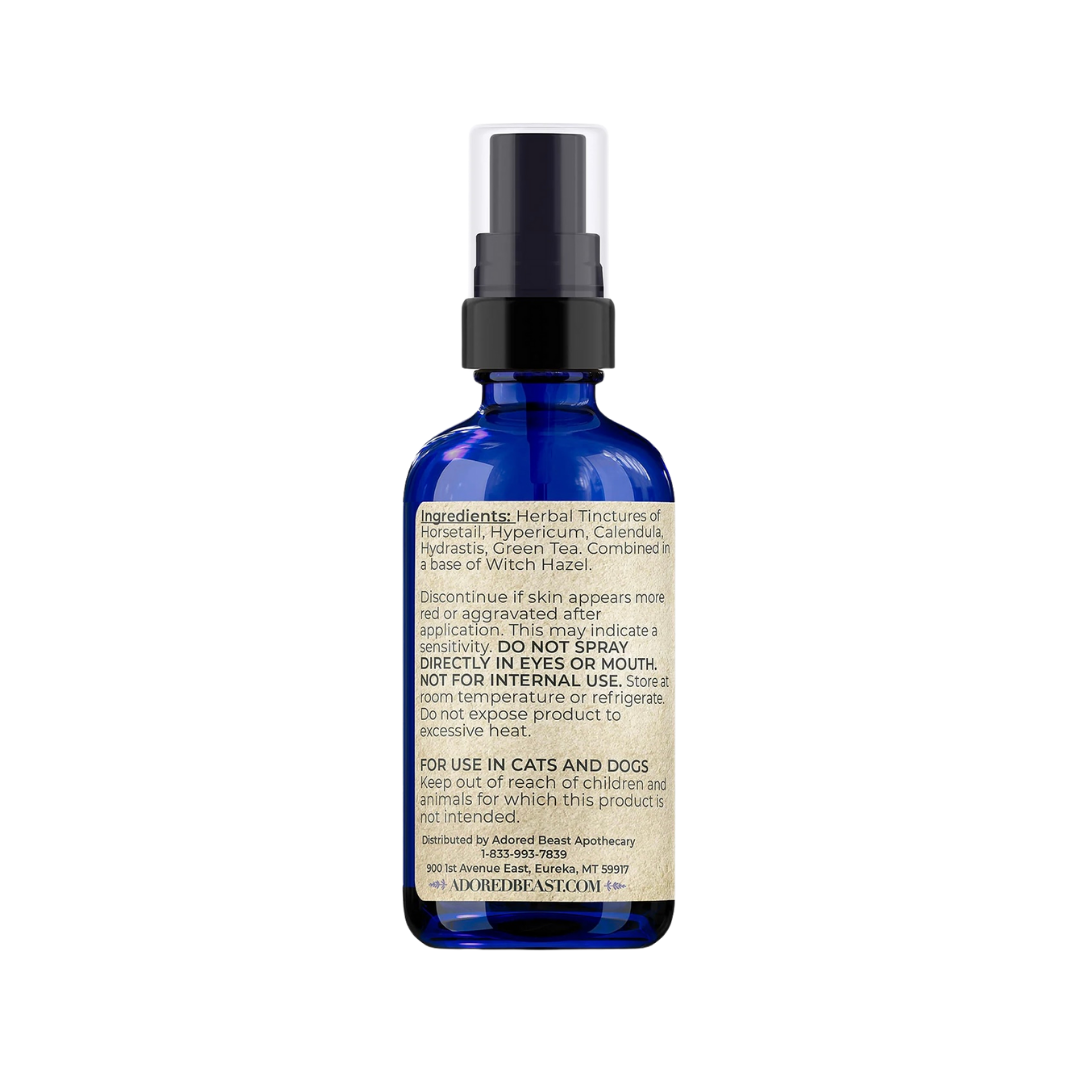 Whether it’s a scratch, hot spot, bug bite, or irritated paw, your dog’s skin goes through a lot—and healing shouldn’t have to involve harsh chemicals. Adored Beast Skin HEALth Spray is a non-toxic, alcohol-free herbal formula designed to help soothe, cleanse, and support healing for your dog’s skin—naturally. Made with six time-tested medicinal herbs in a gentle witch hazel base, it offers calming, antimicrobial, and restorative care for everyday skin concerns.