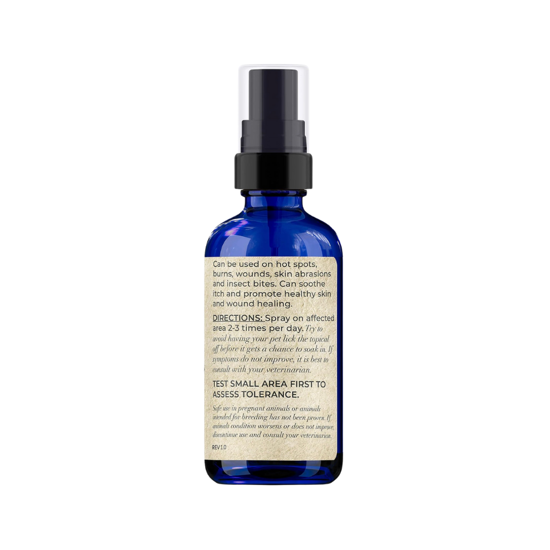 The witch hazel base acts as a soothing, natural astringent that calms redness and itching without drying or damaging the skin barrier. It's a must-have in any holistic first-aid kit, especially for dogs with sensitivities or prone to recurring skin flare-ups.
