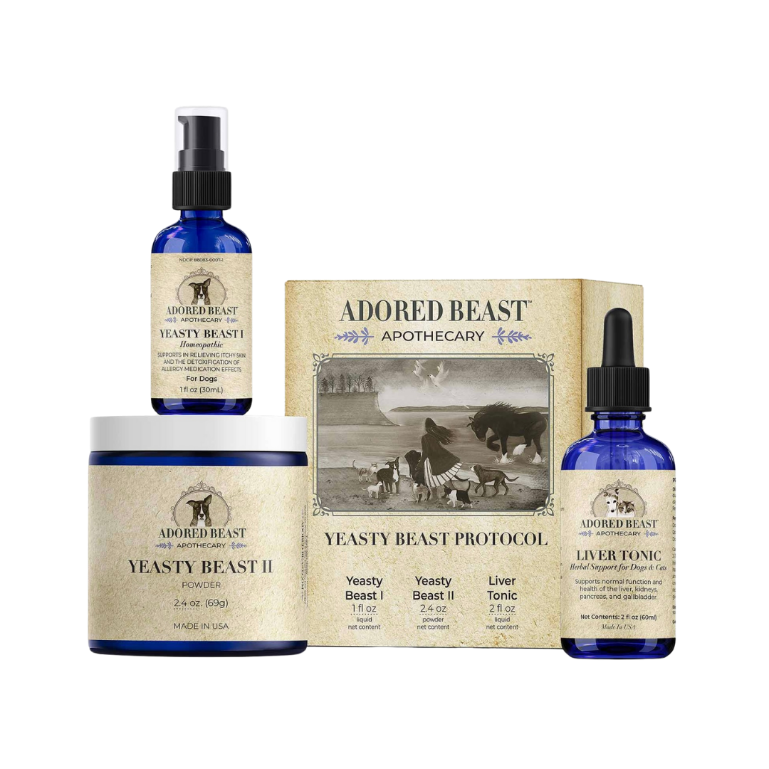 Chronic ear infections, itchy paws, musty odors, and irritated skin are all signs your dog may be dealing with yeast overgrowth—a common result of gut dysbiosis, immune imbalance, and compromised detox pathways. Adored Beast’s Yeasty Beast Protocol is a targeted, 3-product system designed to address yeast at the root level by supporting the gut-skin axis, promoting healthy microbial balance, and gently clearing toxins from the body.