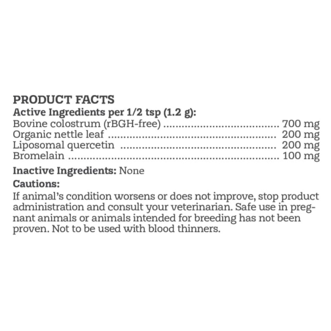 Sprinkle over food daily. For best results, use consistently—especially during allergy season. It pairs well with gut-healing or probiotic supplements.