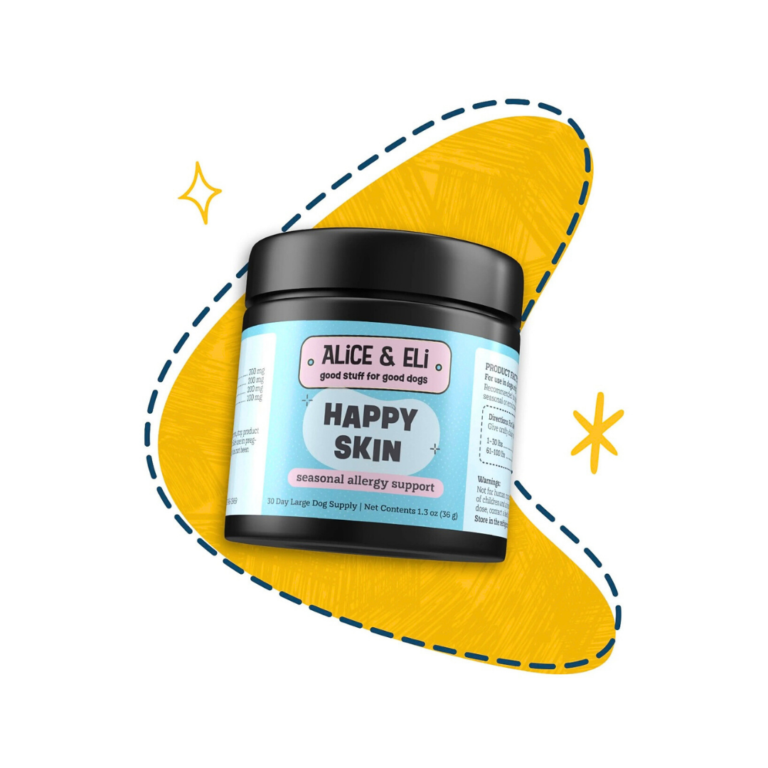 Alice & Eli Happy Skin supports healthy skin and a balanced immune system, giving your dog lasting relief from itching and allergies so they can feel more comfortable every day.