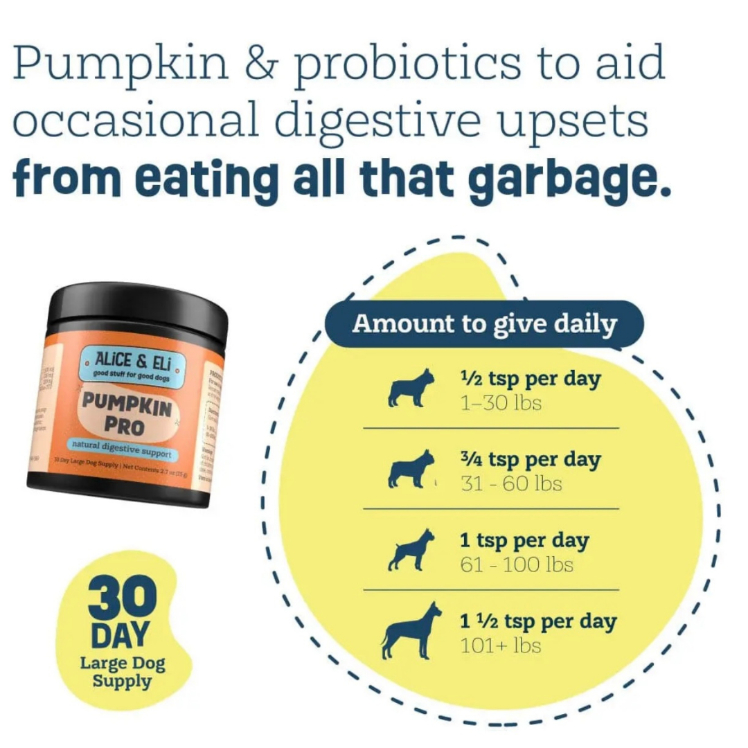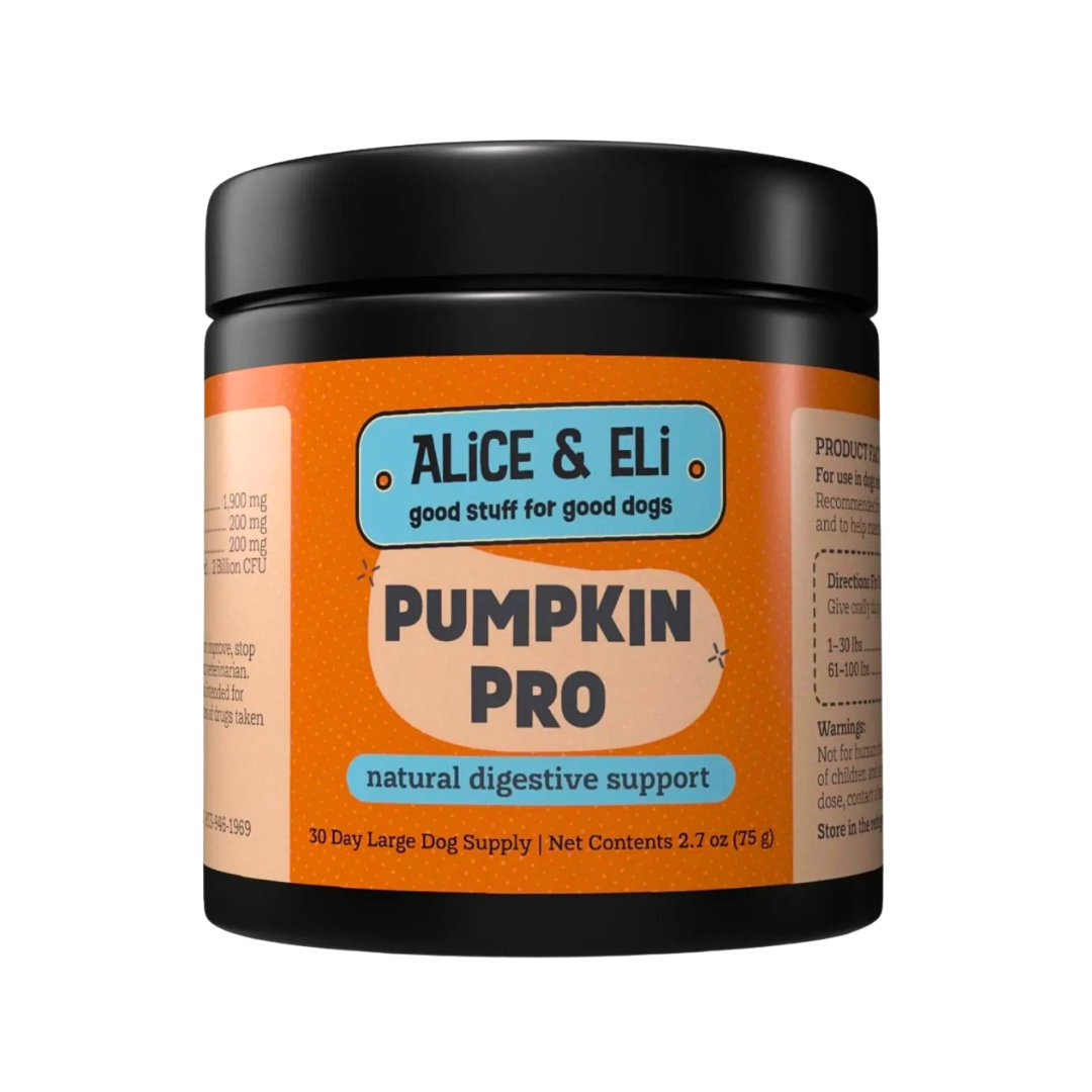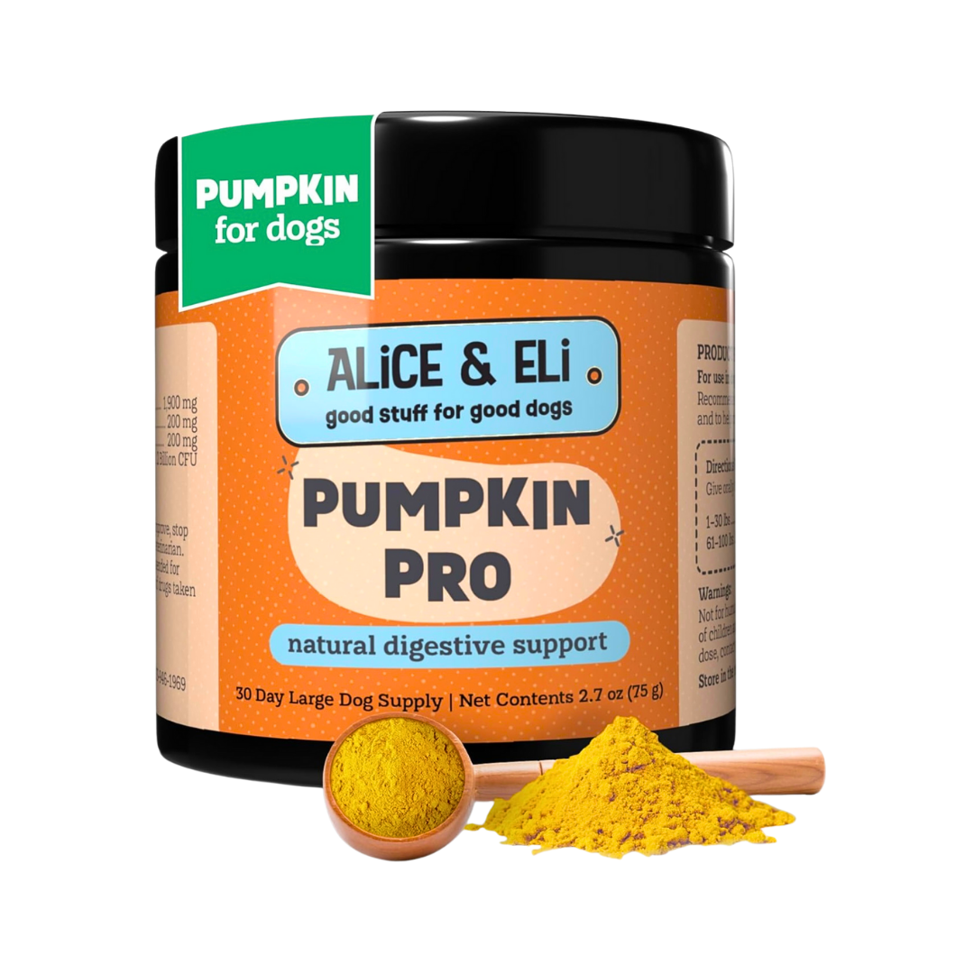 Alice & Eli Pumpkin Pro makes it easy to support your dog’s digestion with real food, healing herbs, and probiotics that work. It’s a scoop of comfort you can feel good about giving every day.