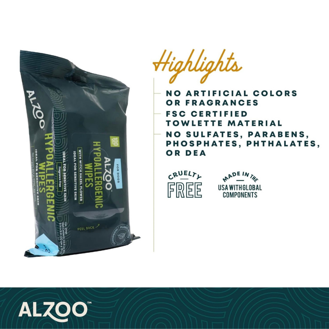 Alzoo Hypoallergenic Grooming Wipes | Gentle Cleansing for Sensitive Dogs