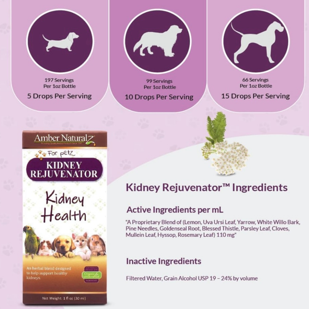 Kidney Rejuvenator offers a gentle, herbal approach to supporting one of your dog’s most important detox organs. With time-tested herbs that encourage healthy urinary flow, reduce inflammation, and support waste elimination, this formula helps your dog stay comfortable, hydrated, and well-balanced at any stage of life.
