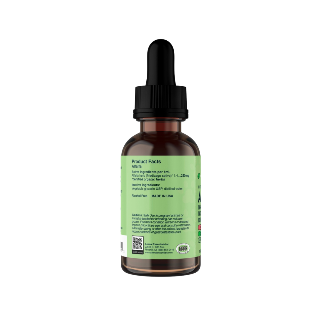 Whether your dog is dealing with arthritis, stiffness, allergies, or could simply benefit from seasonal cleansing, Animal Essentials Alfalfa offers a gentle, whole-body approach. This USDA Certified Organic tincture is made from fresh alfalfa herb, a nutrient-dense plant that’s been used in traditional herbal medicine for centuries. Rich in chlorophyll, flavonoids, and minerals, alfalfa helps support a healthy inflammation response, aids in gentle detoxification, and nourishes connective tissue for mobility and comfort.