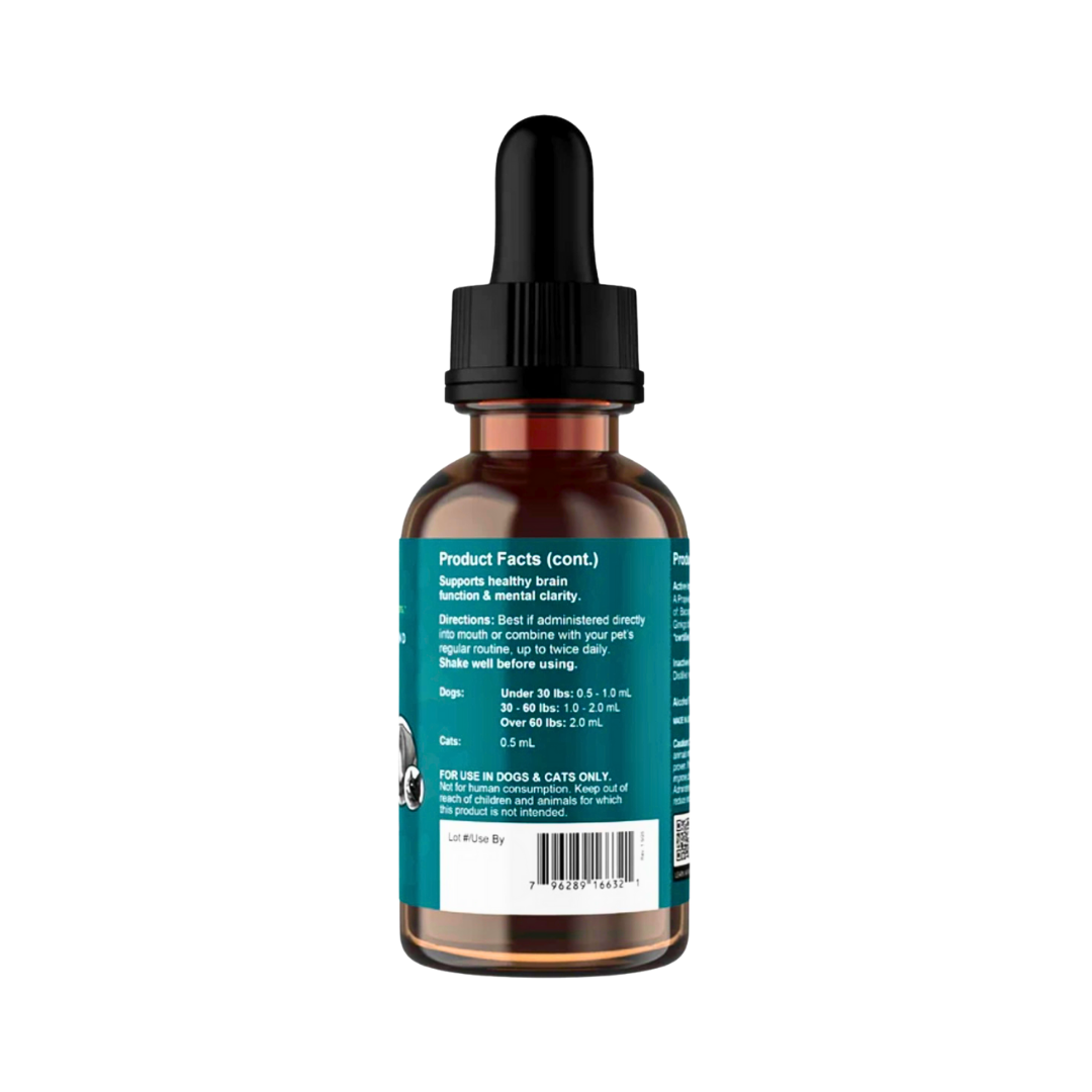Animal Essentials Brain Awake is a gentle, glycerin-based tincture made with USDA Certified Organic herbs and medicinal mushrooms known for their nootropic (brain-supportive) properties. Together, these ingredients help protect nerve cells, improve circulation to the brain, and support memory and focus. Safe for daily, long-term use, this formula is designed to not only help dogs already showing cognitive changes, but also to serve as a preventative tool—keeping your dog’s brain healthy before decline sets in.