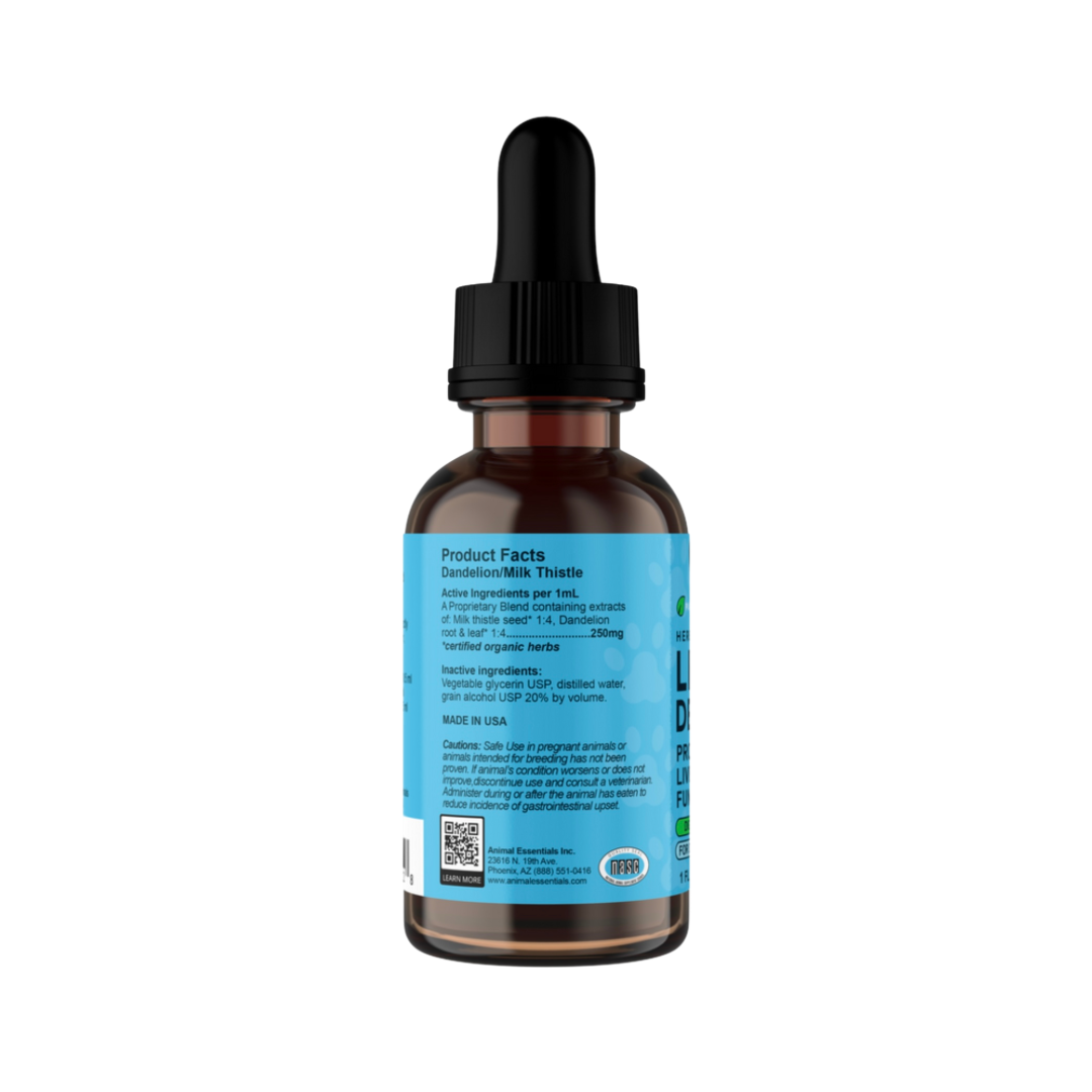 Your dog’s liver plays a vital role in detoxification, digestion, and immune regulation—and it often carries a heavy load in today’s toxin-filled world. Animal Essentials Liver Defense offers a safe, herbal way to support liver function using two of nature’s most respected liver allies: milk thistle seed and dandelion root & leaf. This USDA Certified Organic, glycerin-based tincture is ideal for regular use, seasonal detox, recovery from medications, anesthesia, chemical exposure, or during times of increased toxic burden.