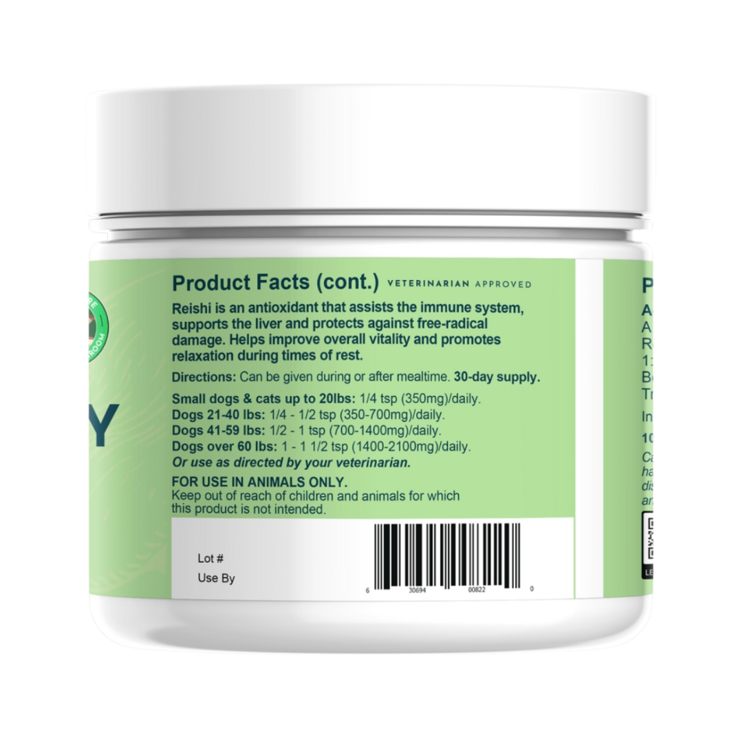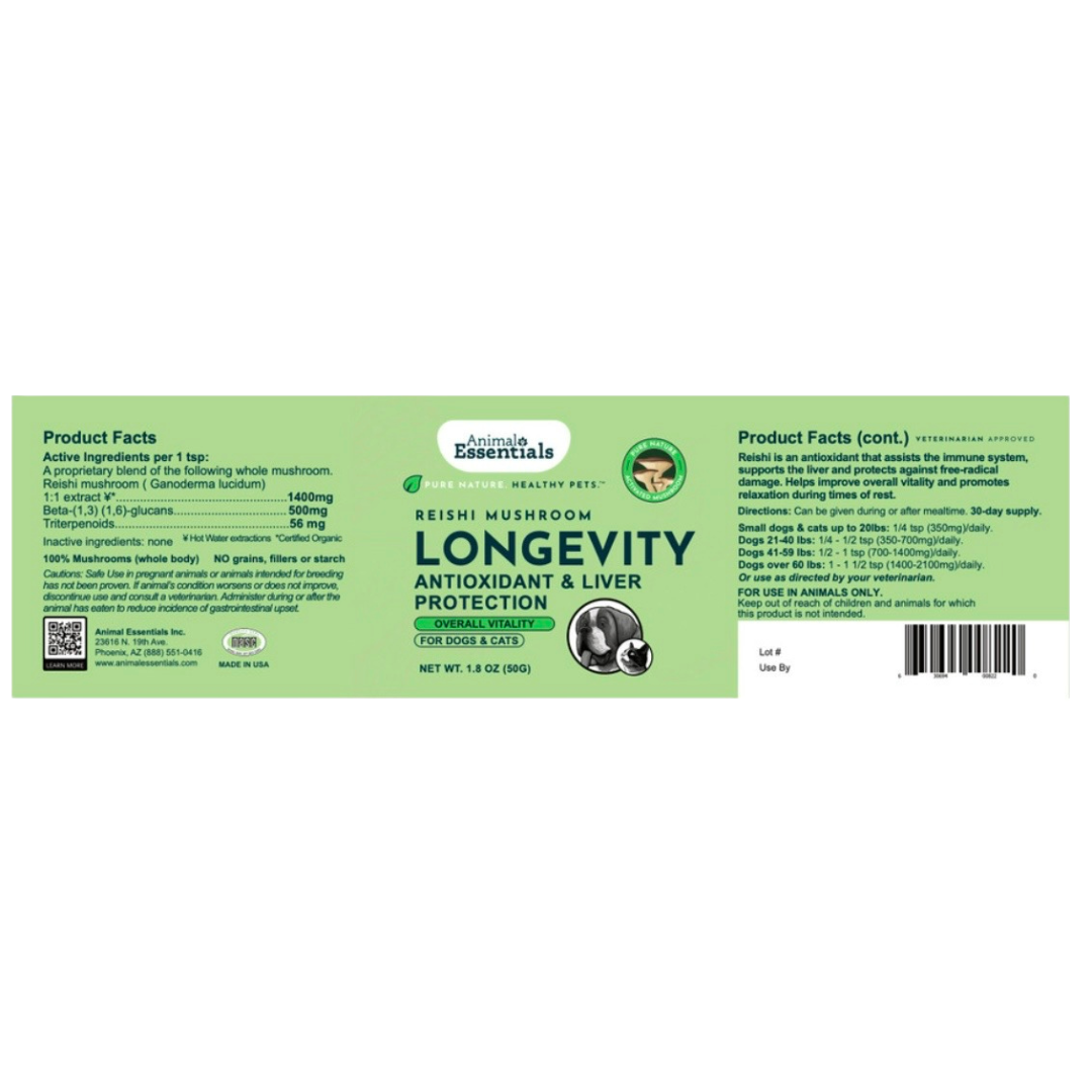 For centuries, reishi mushrooms have been known as the “Mushroom of Immortality” in traditional Chinese medicine—and for good reason. Animal Essentials Organic Reishi Mushroom offers powerful adaptogenic support to help your dog thrive through stress, support immune balance, and promote long-term cellular health. This certified organic powder is easy to mix into meals and provides targeted wellness support for dogs of all ages, especially seniors or dogs with chronic immune or inflammatory conditions.