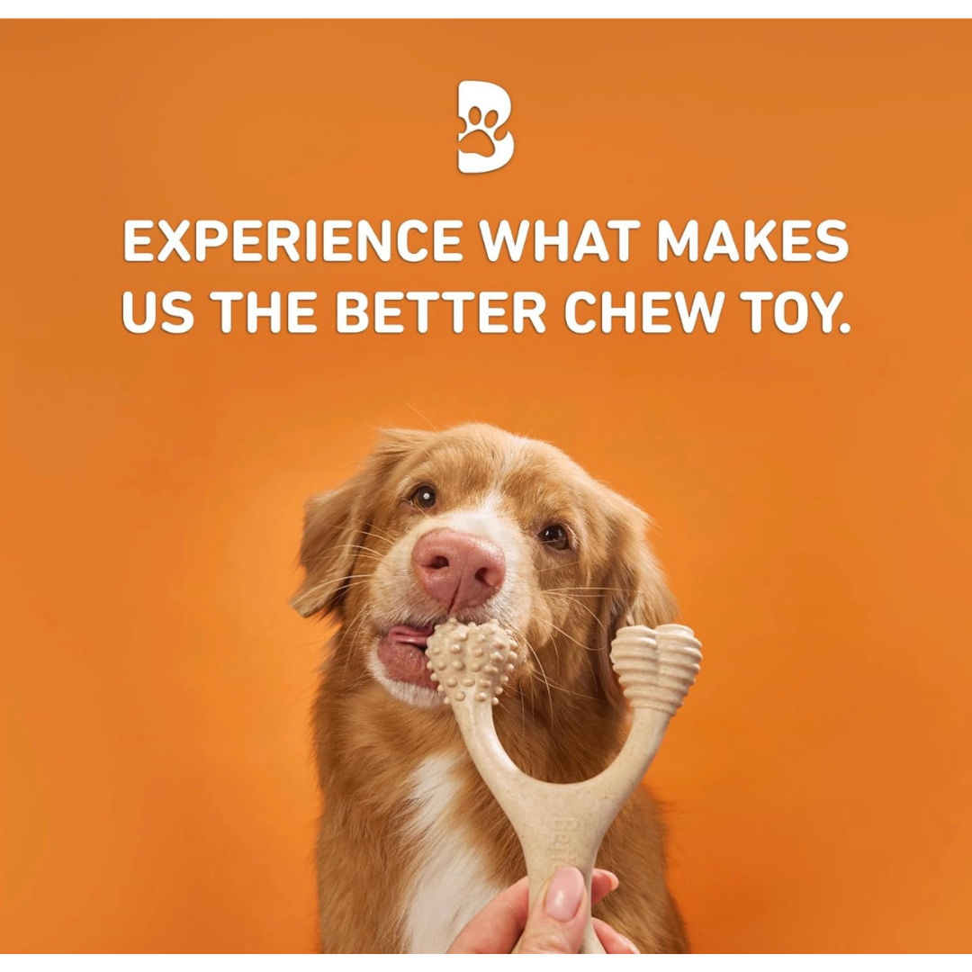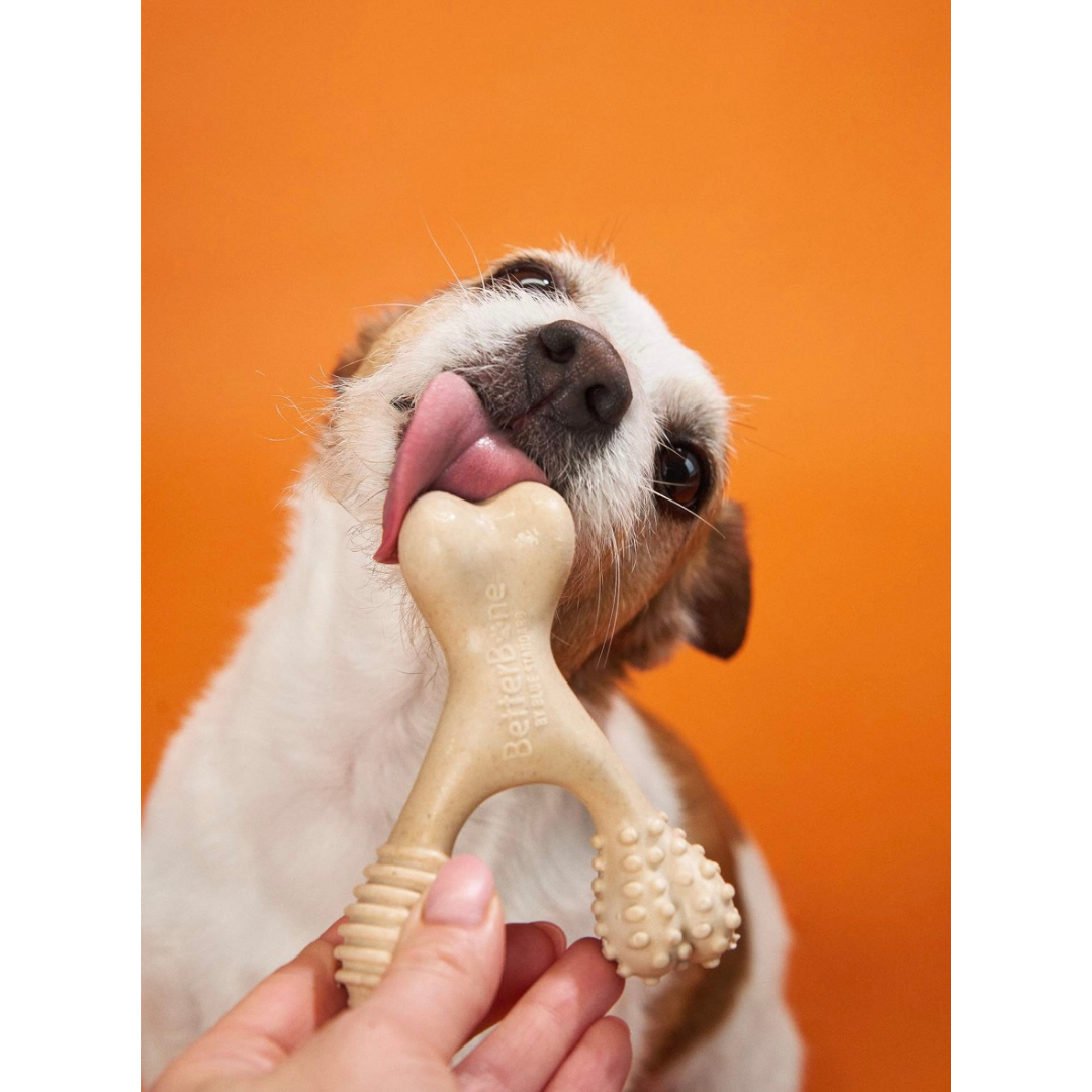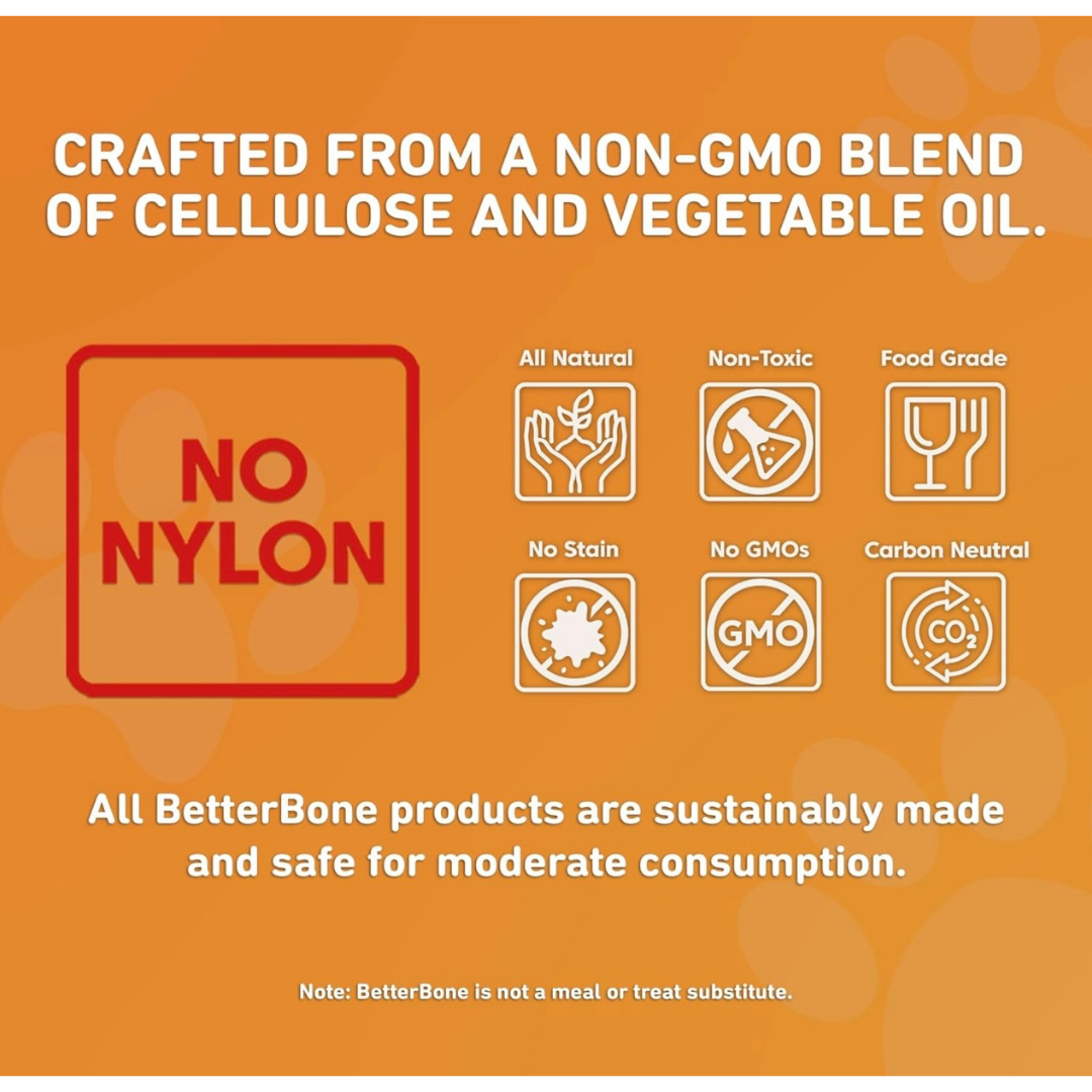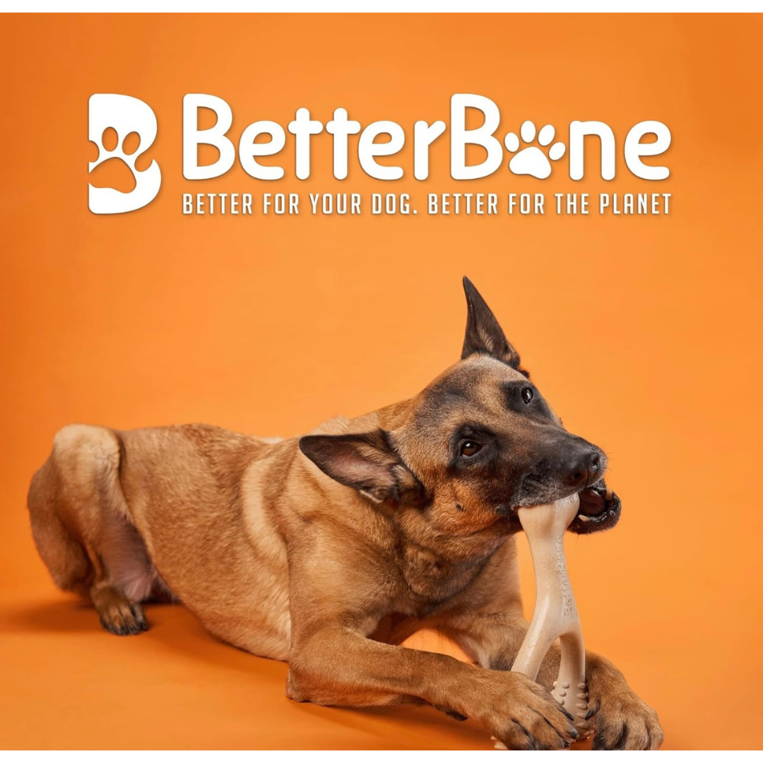 BetterBone is committed to sustainability. This chew toy is made from eco-friendly materials that are safe for your dog and the planet. Crafted from a non-toxic and fully recyclable blend, the BetterBone chew ensures your pet's safety while minimizing environmental impact. Unlike traditional plastic and nylon chews, this product is free from harmful chemicals and toxins, ensuring a safer play experience for your dog.