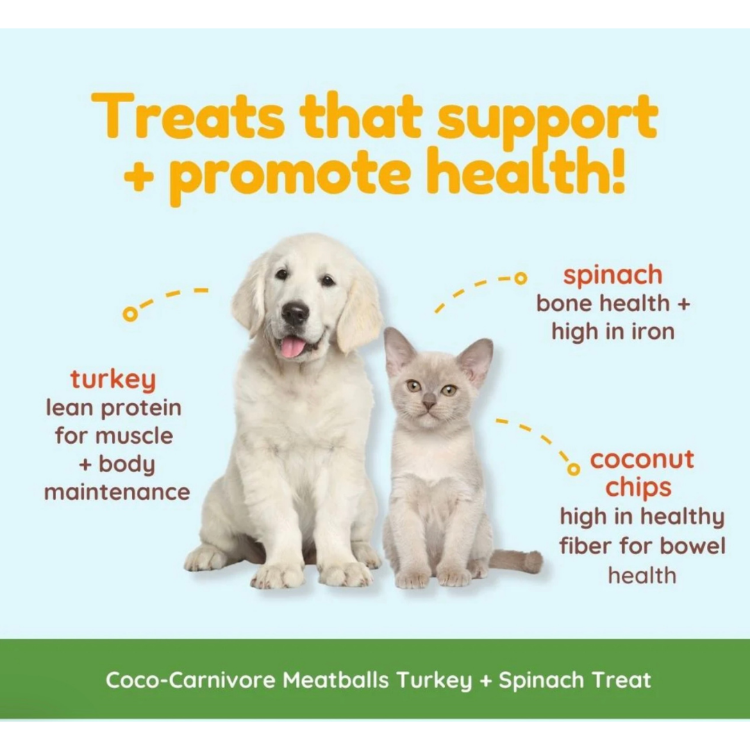 CocoTherapy Coco-Carnivore Meatballs – Turkey are more than just a treat—they’re a species-appropriate snack made with clean protein and functional ingredients to support your dog’s daily health.