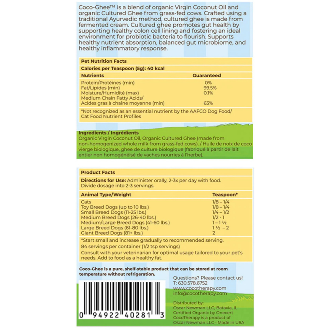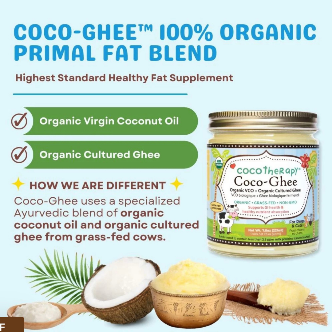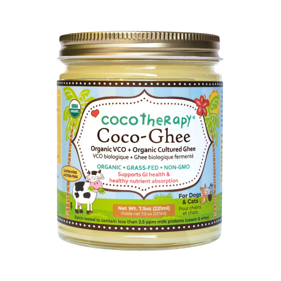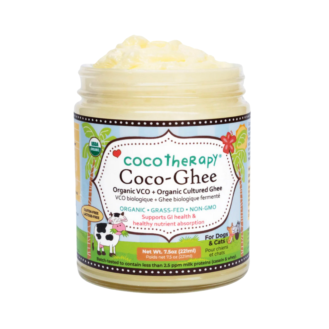 Looking for a clean, nourishing fat source that supports your dog’s health from the inside out? CocoTherapy Coco-Gheecombines two of nature’s most nutrient-dense fats—organic virgin coconut oil and organic cultured ghee—to provide a powerful blend of medium-chain triglycerides (MCTs), butyrate, and fat-soluble vitamins that benefit nearly every system in the body.