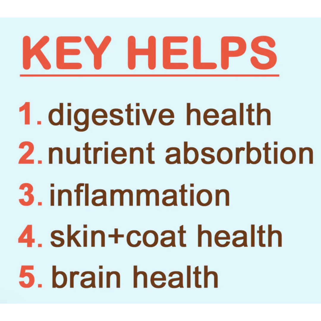 This combination offers a functional, delicious fat supplement ideal for dogs of all ages—especially those needing support for cognitive health, digestion, or chronic inflammation. This is a clean, bioavailable fat source your dog’s body can use for fuel and healing.