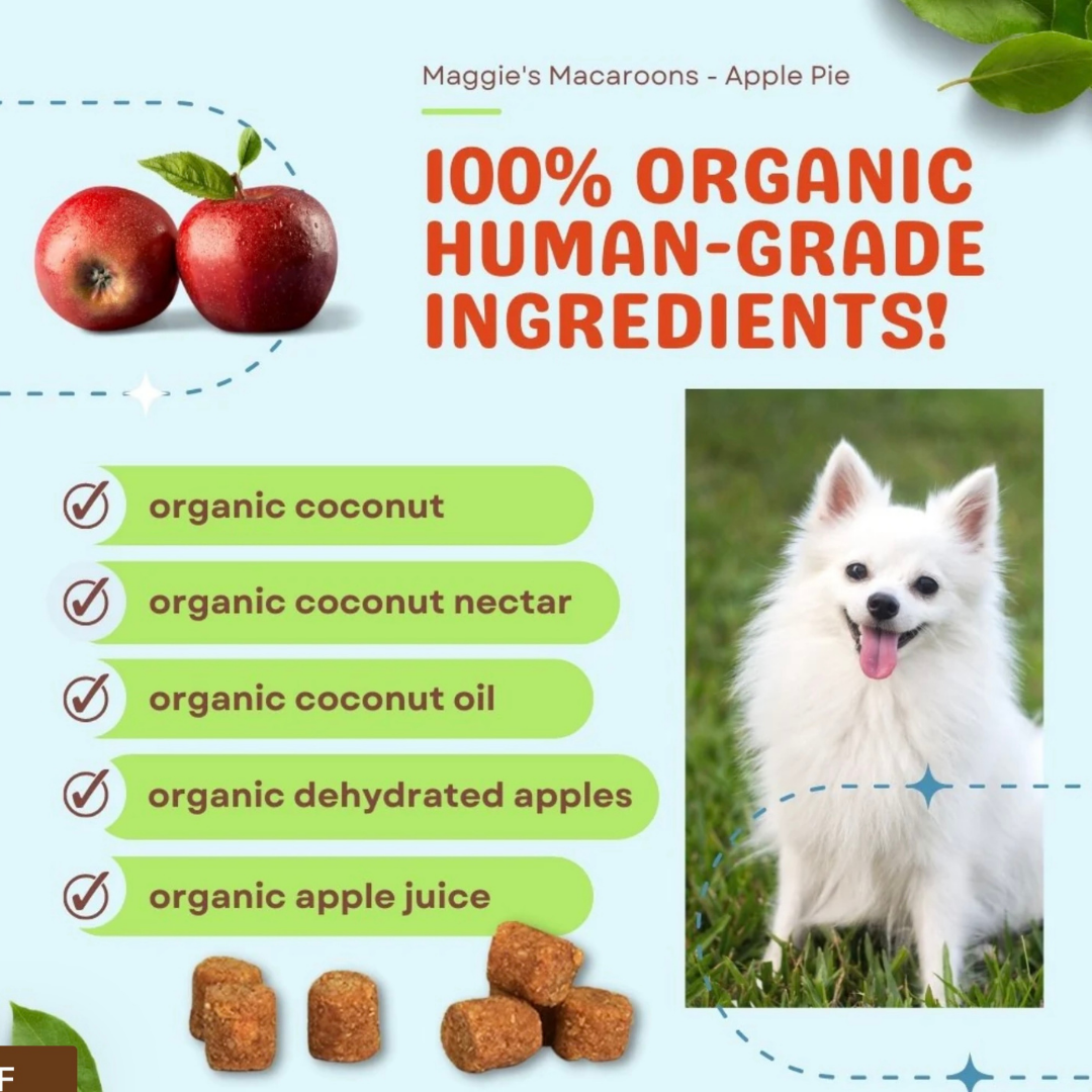 CocoTherapy Maggie’s Macaroons – Apple Pie blend real food ingredients with functional benefits—because your dog deserves treats that taste good and do good.