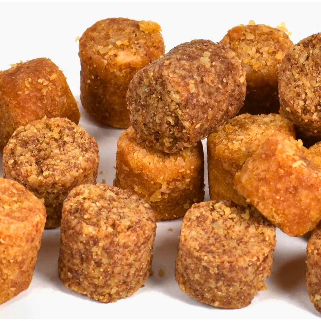 This functional treat blends the gut-supportive power of organic coconut with the antioxidant benefits of organic applesfor a snack that’s as beneficial as it is delicious. Coconut delivers medium-chain triglycerides (MCTs), lauric acid, and prebiotic fiber to support microbiome balance, reduce inflammation, and nourish the skin and coat. Dehydrated applesbring in quercetin, pectin, and polyphenols that help neutralize free radicals and gently support detox. The result? A treat that satisfies your dog’s sweet tooth while supporting whole-body health.