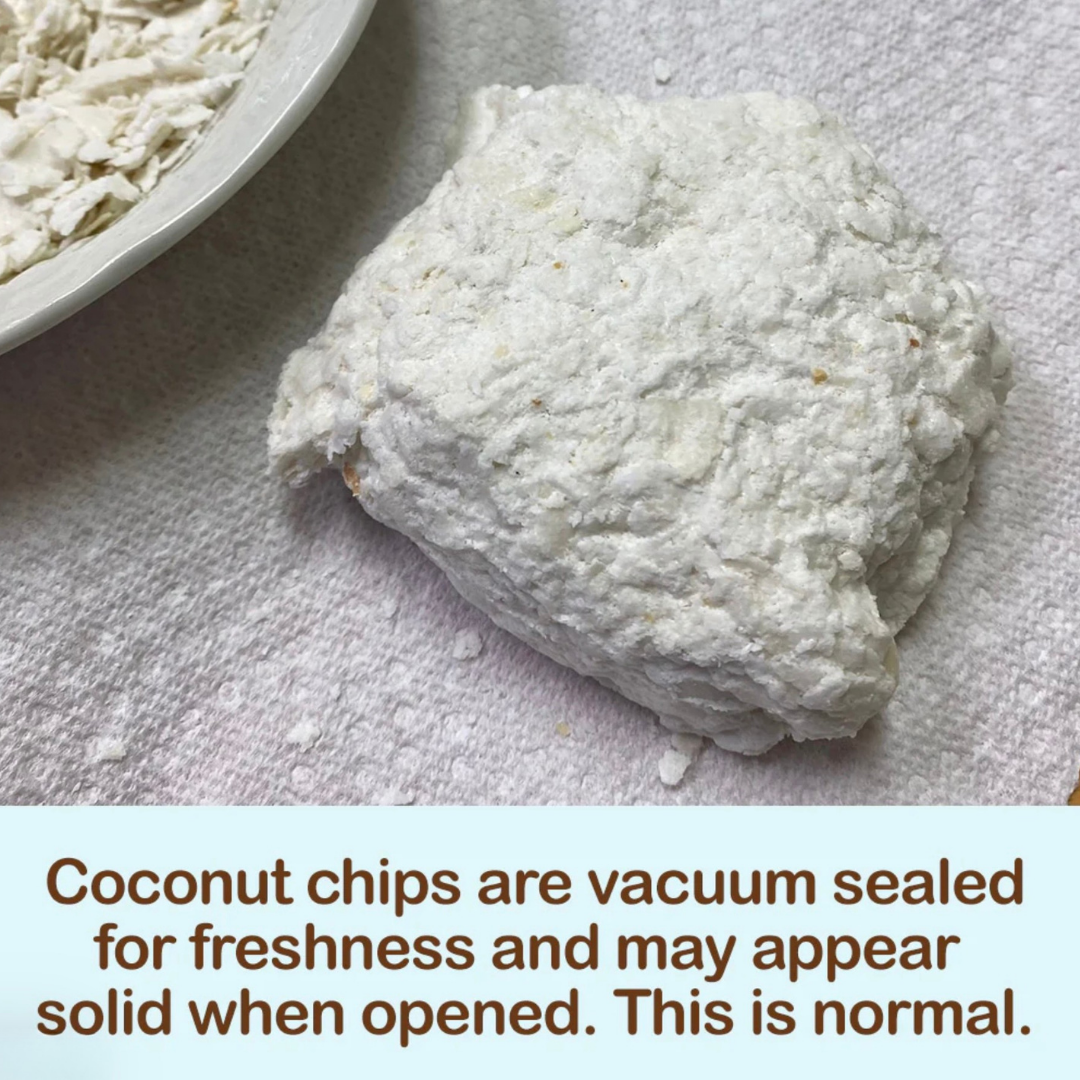 ✓ 100% Organic dehydrated coconut. Human-grade. Raw. Non-GMO.