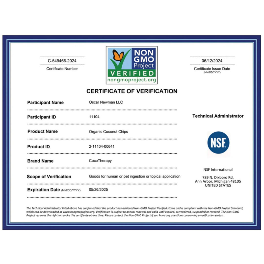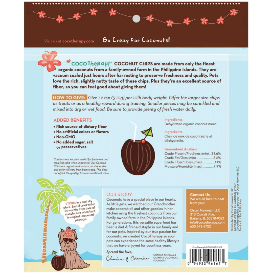 CocoTherapy Organic Coconut Chips are a crunchy, clean way to add functional fats, fiber, and flavor to your dog’s diet—supporting whole-body health with every bite.