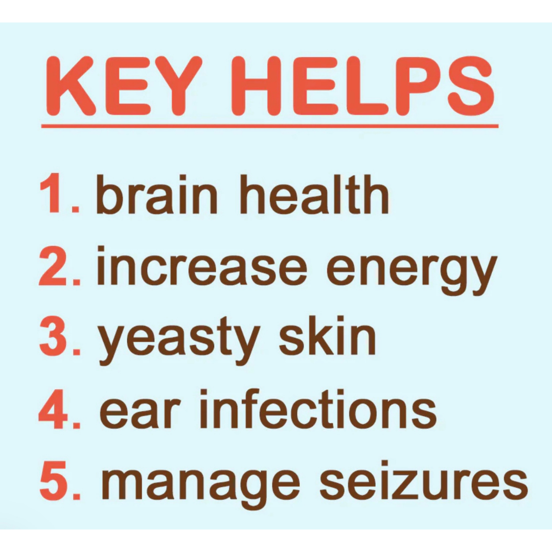 MCTs are rapidly absorbed, fat-based energy sources that bypass typical digestion and go straight to the liver for conversion into ketones—clean fuel for the brain and body. This makes MCTs especially valuable for senior dogs, dogs with neurological issues, dogs prone to yeast overgrowth, and those needing metabolic support.