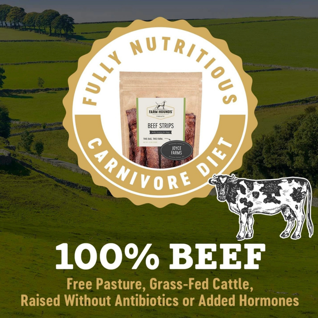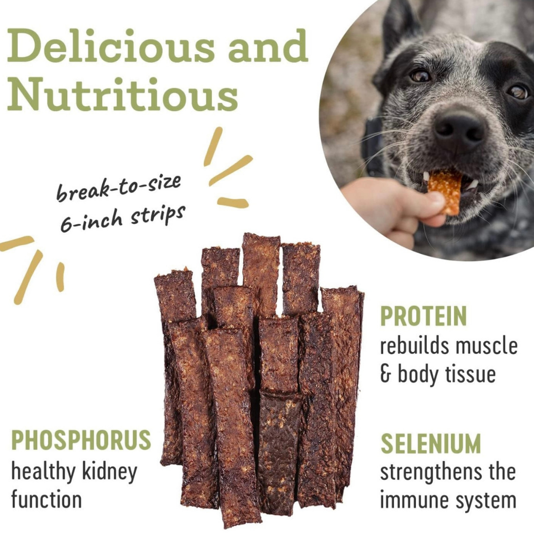 Farm Hounds Beef Strips are the perfect treat for dogs that crave a savory, protein-rich snack. Made from 100% pasture-raised beef, these dehydrated strips offer a pure and natural source of nutrition, free from artificial additives, fillers, or preservatives. Sourced from small family farms that follow humane and sustainable farming practices, these beef strips are not only delicious but also ethically sourced, making them a treat you can feel good about giving your dog.