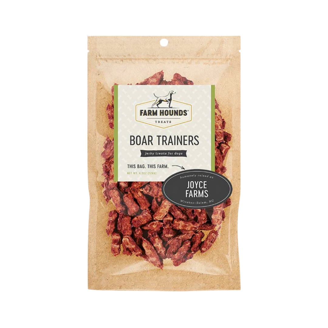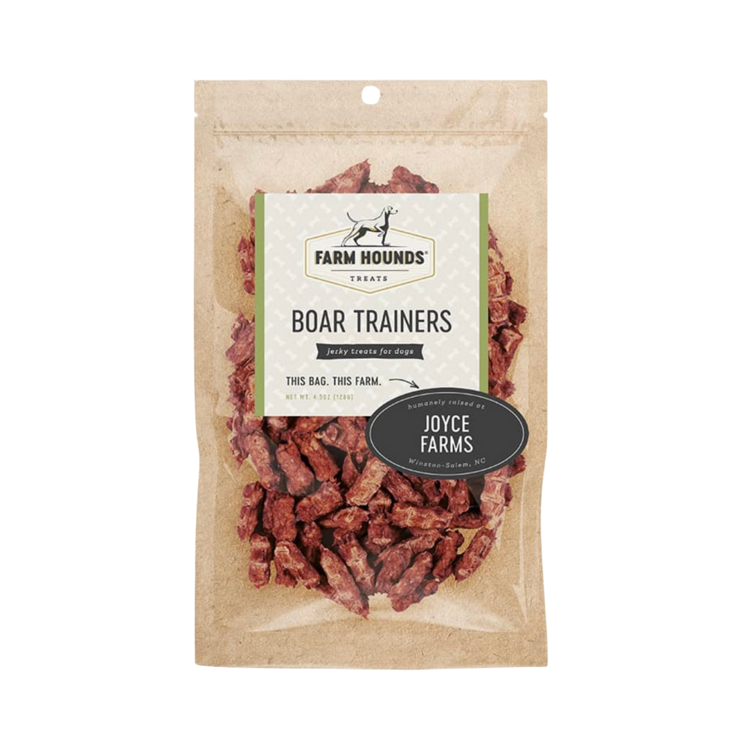 Farm Hounds Boar Trainers deliver clean, high-value rewards from ethically sourced wild boar—perfect for training, food sensitivities, or just showing your dog some seriously good taste.