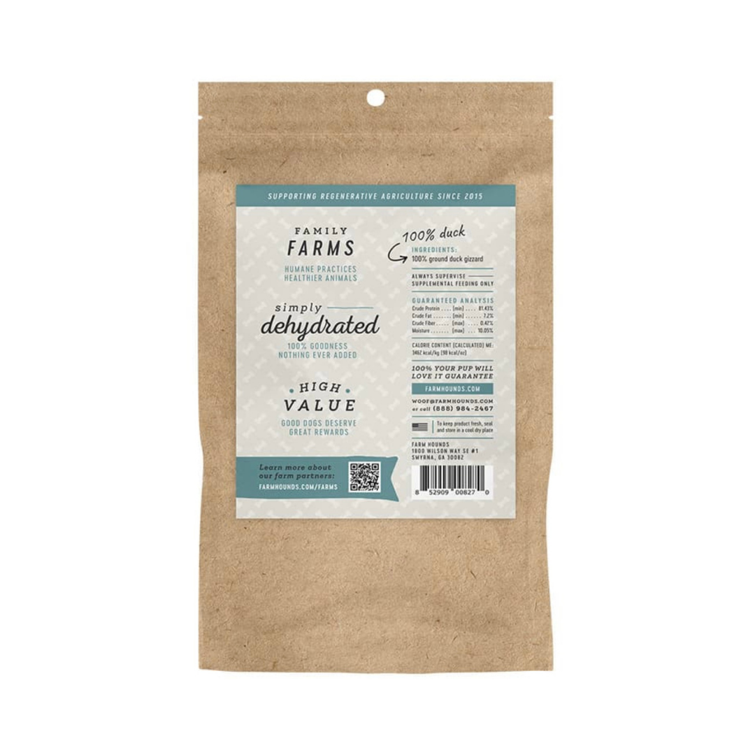 Organ meats like duck gizzards deliver bioavailable nutrients that muscle meats often lack—especially taurine, zinc, and B vitamins that support your dog’s heart, metabolism, and overall energy. Because Farm Hounds sources directly from small family farms using regenerative practices, you’re not just giving your dog the healthiest treats—you’re supporting healthy soils, animal welfare, and sustainable agriculture. Every treat is traceable and trustworthy, with no hidden ingredients or greenwashing.