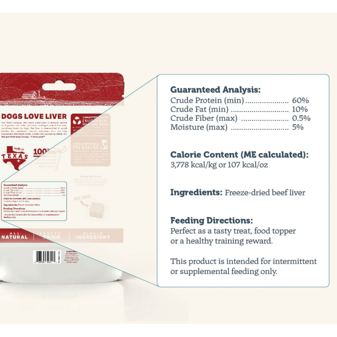 Give your dog the most nutrient-rich organ meat nature has to offer. Four Leaf Rover Beef Liver Treats are made from 100% grass-fed, grass-finished beef liver—freeze-dried to preserve all of its powerful nutrients. Packed with highly bioavailable vitamins A and B, iron, and trace minerals, these treats support immune health, energy, and natural detox pathways in your dog’s body.