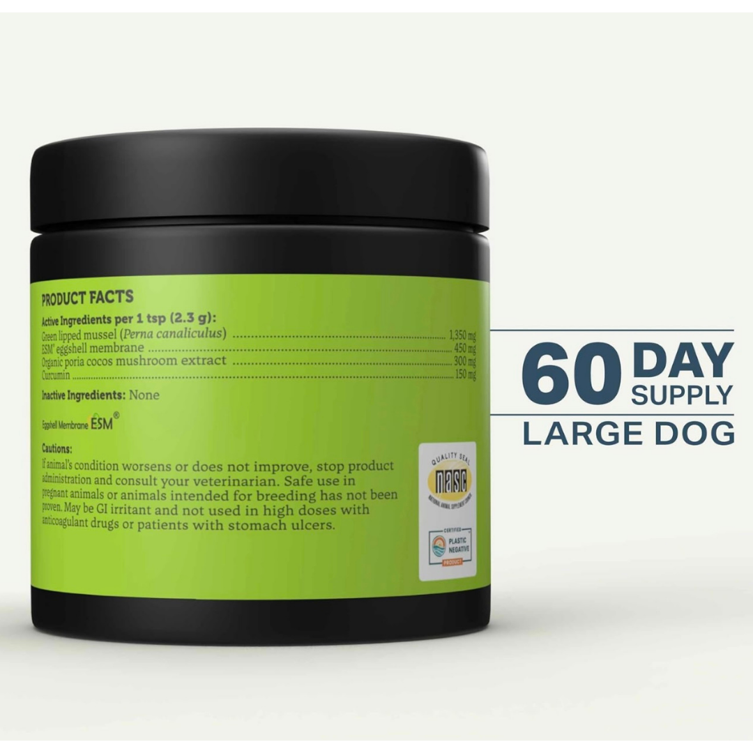 I highly recommend this for any dog experiencing joint issues. The unique combination of Green Lipped Mussels and Natural Eggshell Membrane provides vital nutrients which significantly improve joint health. My senior dog has shown remarkable improvements in mobility and less discomfort during walks. The addition of curcumin also helps in reducing inflammation, making this an awesome supplement for maintaining healthy joints.