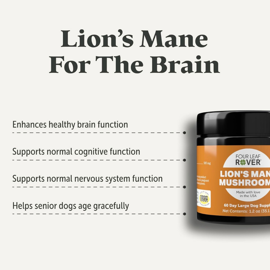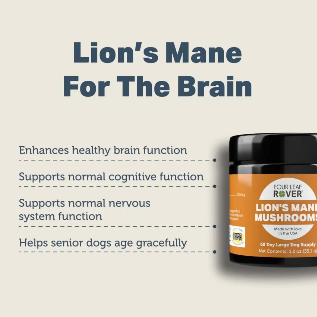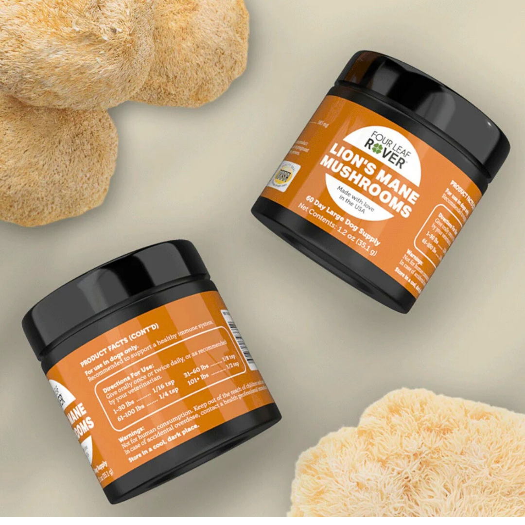 Looking to support your dog’s brain, nerves, and focus especially as they age? Lion’s Mane is one of the most powerful natural ingredients for cognitive and neurological health. Sourced from 100% organic fruiting bodies and dual-extracted for maximum potency, Four Leaf Rover’s Lion’s Mane Mushroom Extract helps keep your dog mentally sharp, neurologically strong, and better able to handle stress, aging, or recovery from injury.