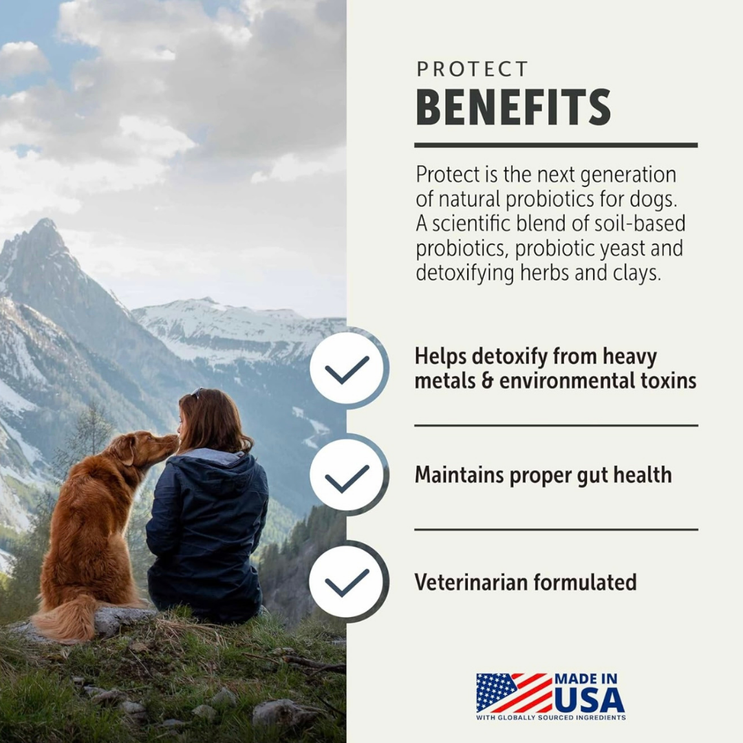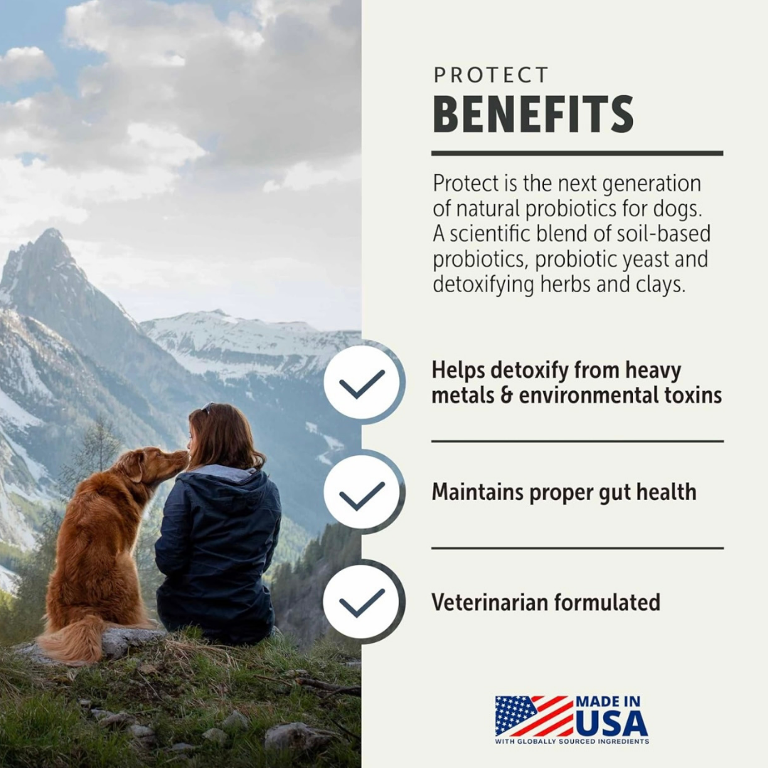 With powerful soil-based probiotics, gut-healing yeast, and detoxifying whole foods, Protect gives your dog daily support for gut health, detox, and immune balance especially important in today’s toxic world.