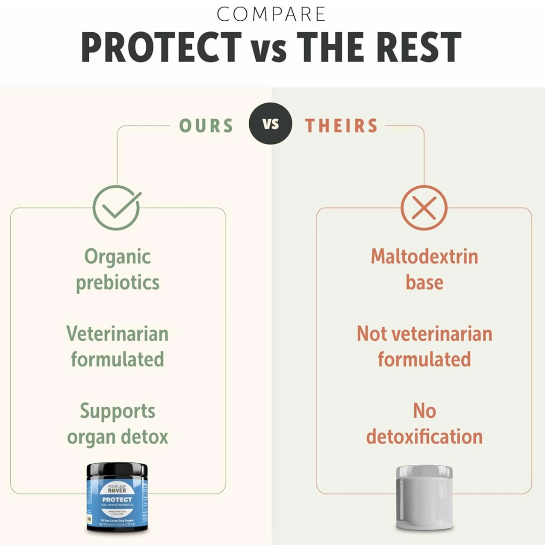 Your dog’s gut plays a huge role in their health, from digestion and immunity to skin and brain function. But in today’s world, dogs are constantly exposed to stressors like pesticides, processed food, and medications that disrupt gut health and overload the detox organs. That’s where Protect comes in.