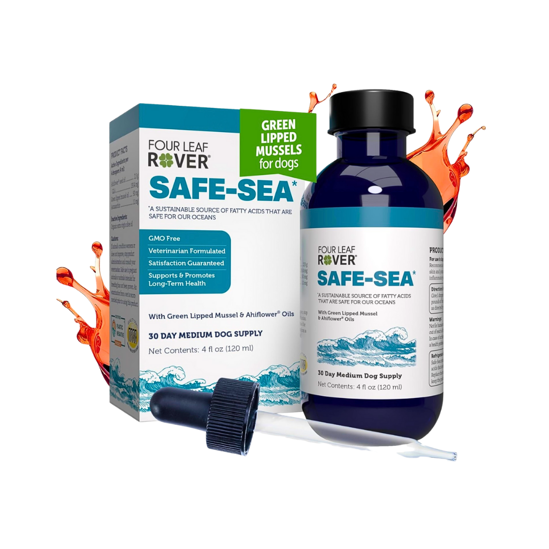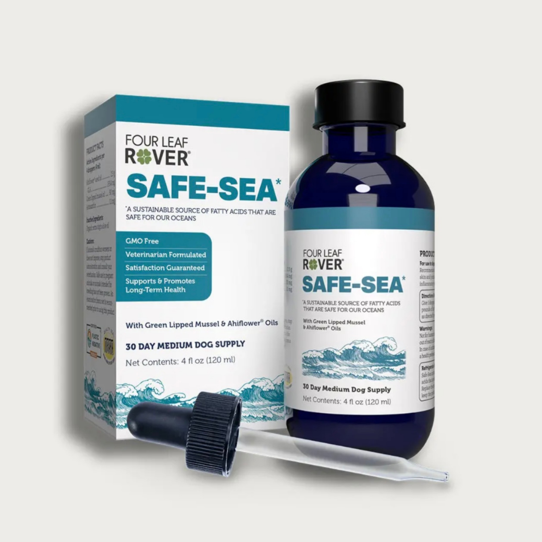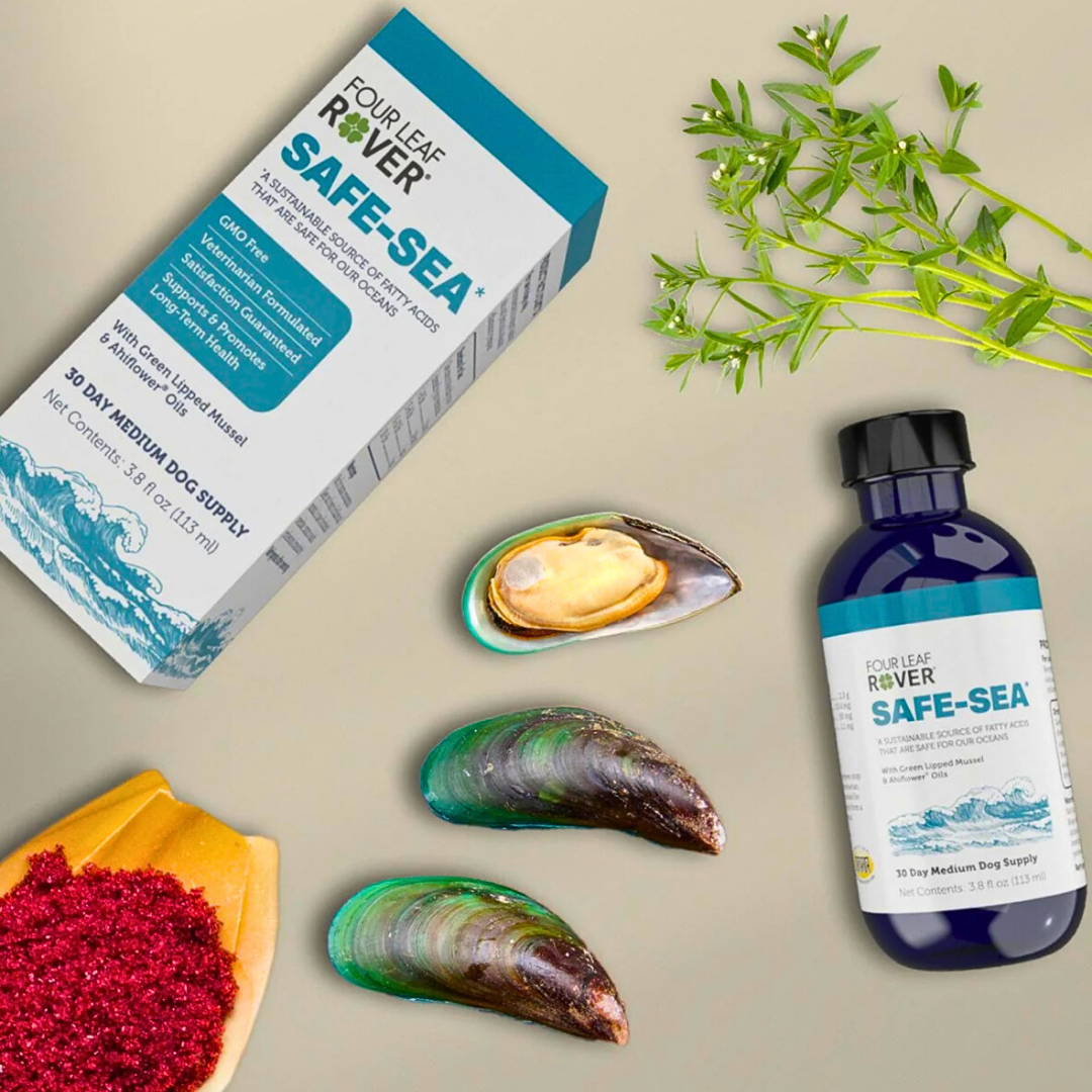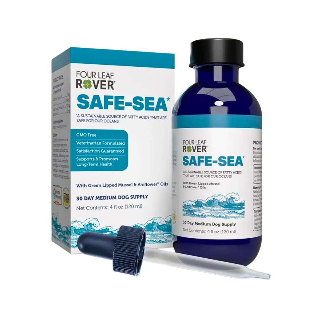 Omega-3s are essential for every dog, but quality matters. They are one of the most important nutrients for dogs but not all sources are clean, balanced, or effective. Four Leaf Rover Safe-Sea offers a smarter, more sustainable solution. It combines green lipped mussel oil, Ahiflower oil, and astaxanthin into one powerhouse supplement that helps reduce inflammation and support your dog’s joints, brain, heart, skin, and immune system.
