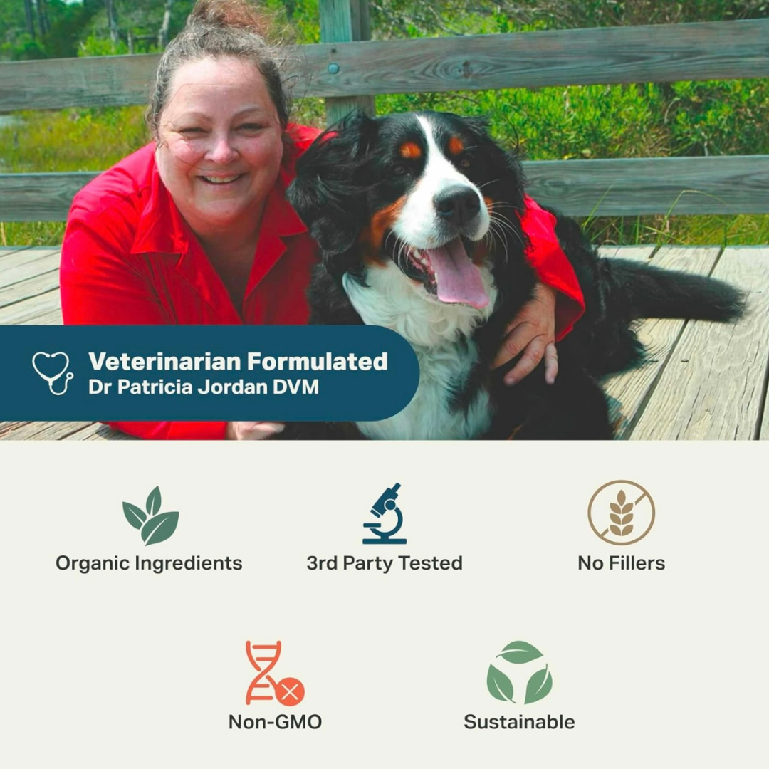 → Green Lipped Mussel Oil – This ocean-sourced oil is one of the most powerful natural sources of joint and inflammation support for dogs. It contains ETA (eicosatetraenoic acid), a rare omega-3 that helps soothe stiff joints and reduce inflammation by targeting the same pathways as anti-inflammatory drugs—without the side effects. It also delivers EPA and DHA to support brain health, skin hydration, immune balance, and mobility, making it especially helpful for senior dogs or dogs with arthritis.