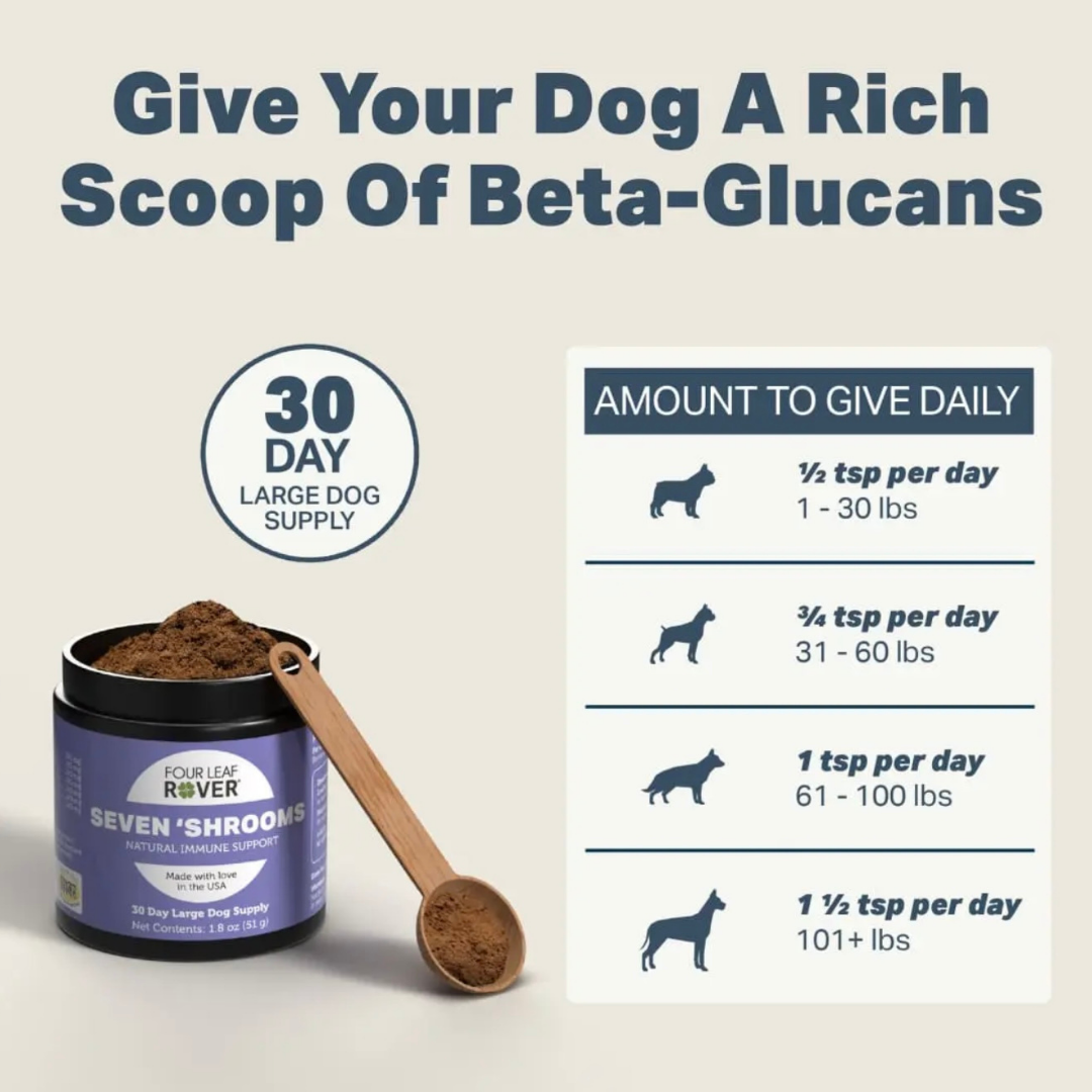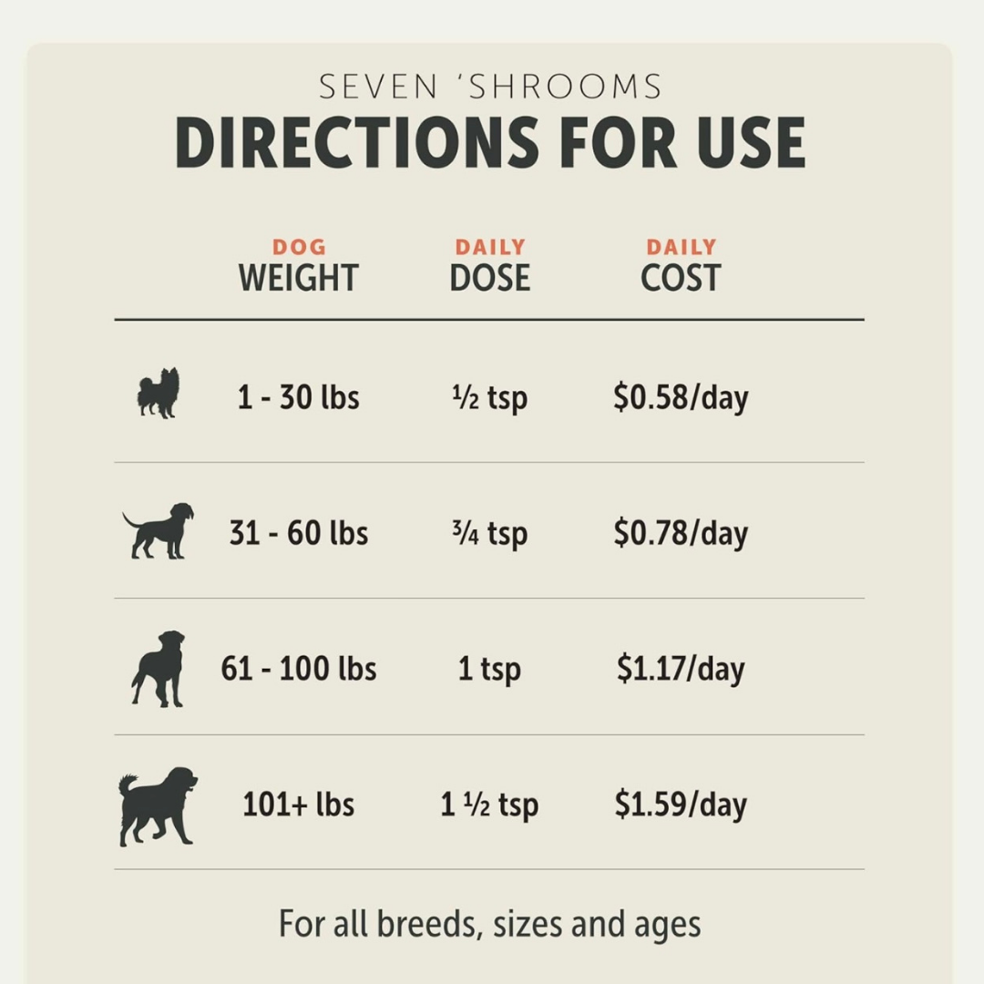 Whether your dog is facing immune stress, inflammation, chronic illness, or simply needs more daily protection, this synergistic blend offers adaptogenic, immune-modulating, and antioxidant-rich support using nothing but whole food mushrooms. From young pups to aging seniors, Seven Shrooms is a clean and powerful way to help your dog thrive.