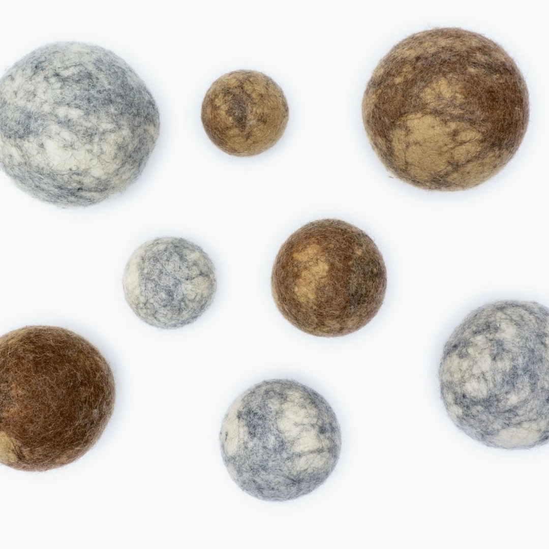 Includes 1 hand-felted ball in rock-inspired neutral tones