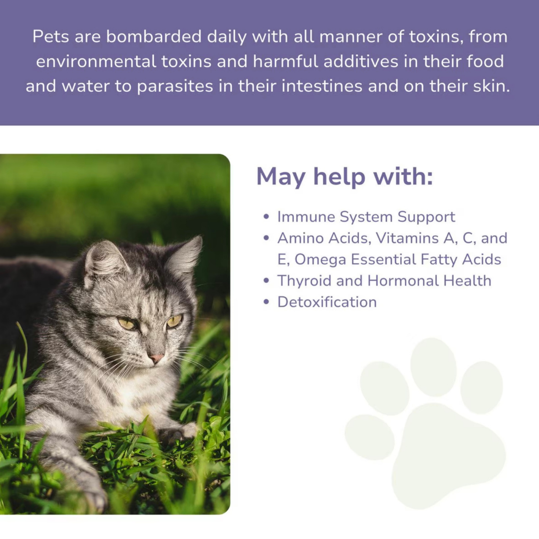 Your dog’s body works hard every day to filter out toxins—from environmental pollutants to pesticide residues and heavy metals. Glacier Peak Holistics Daily Defense offers a gentle yet powerful way to support your dog’s natural detoxification pathways with a blend of nourishing herbs, sea vegetables, and antioxidant-rich plants.