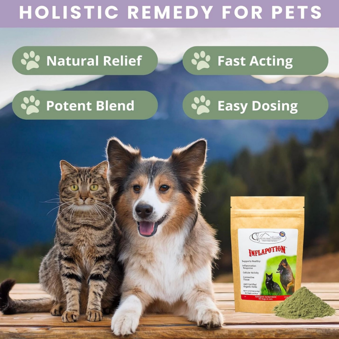Whether your dog is recovering from injury, managing arthritis, or simply needs extra comfort and mobility support, Inflapotion offers gentle, daily nourishment to ease discomfort and promote healing—starting at the root.