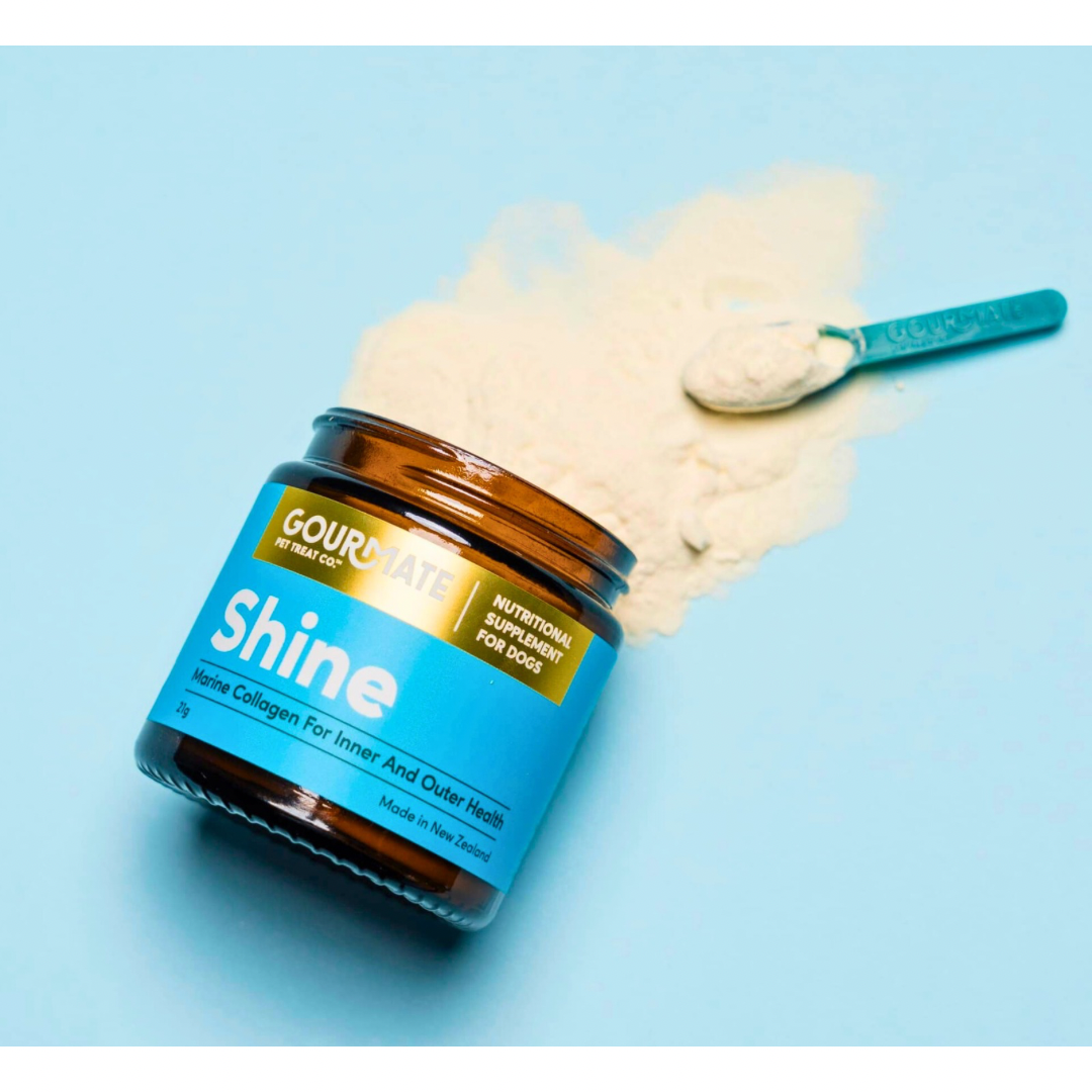 Support your dog’s skin, joints, and connective tissues from the inside out with Gourmate Shine, a single-ingredient marine collagen peptide sourced from sustainably caught New Zealand Hoki. Unlike collagen from land animals, marine collagen is smaller in molecular size, making it highly bioavailable and easy for dogs to absorb—no fillers, no fluff, just functional nourishment from nature.