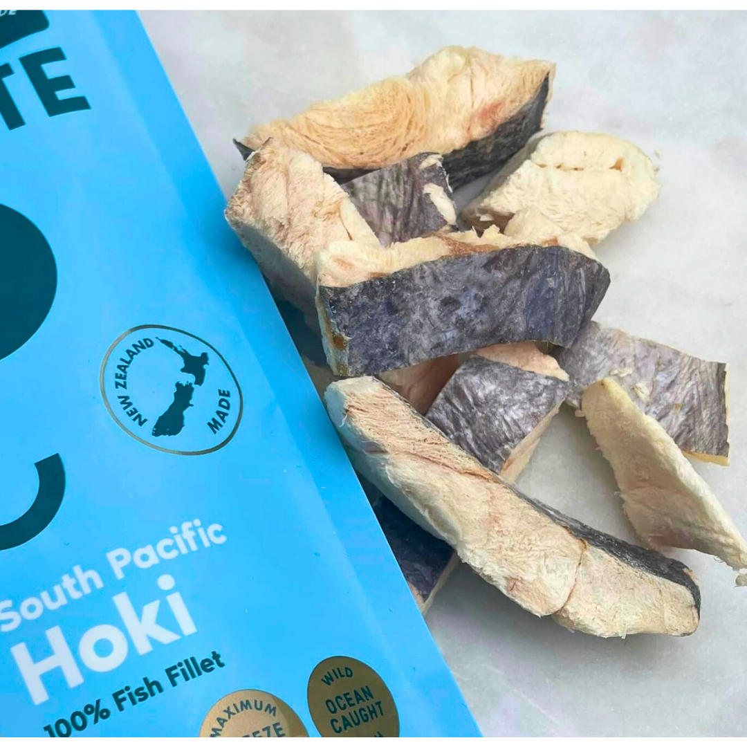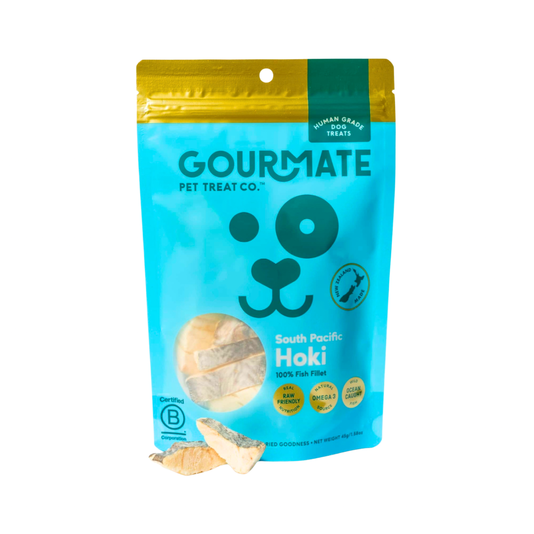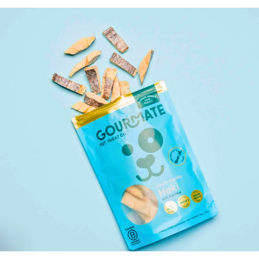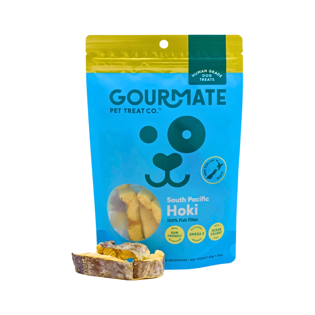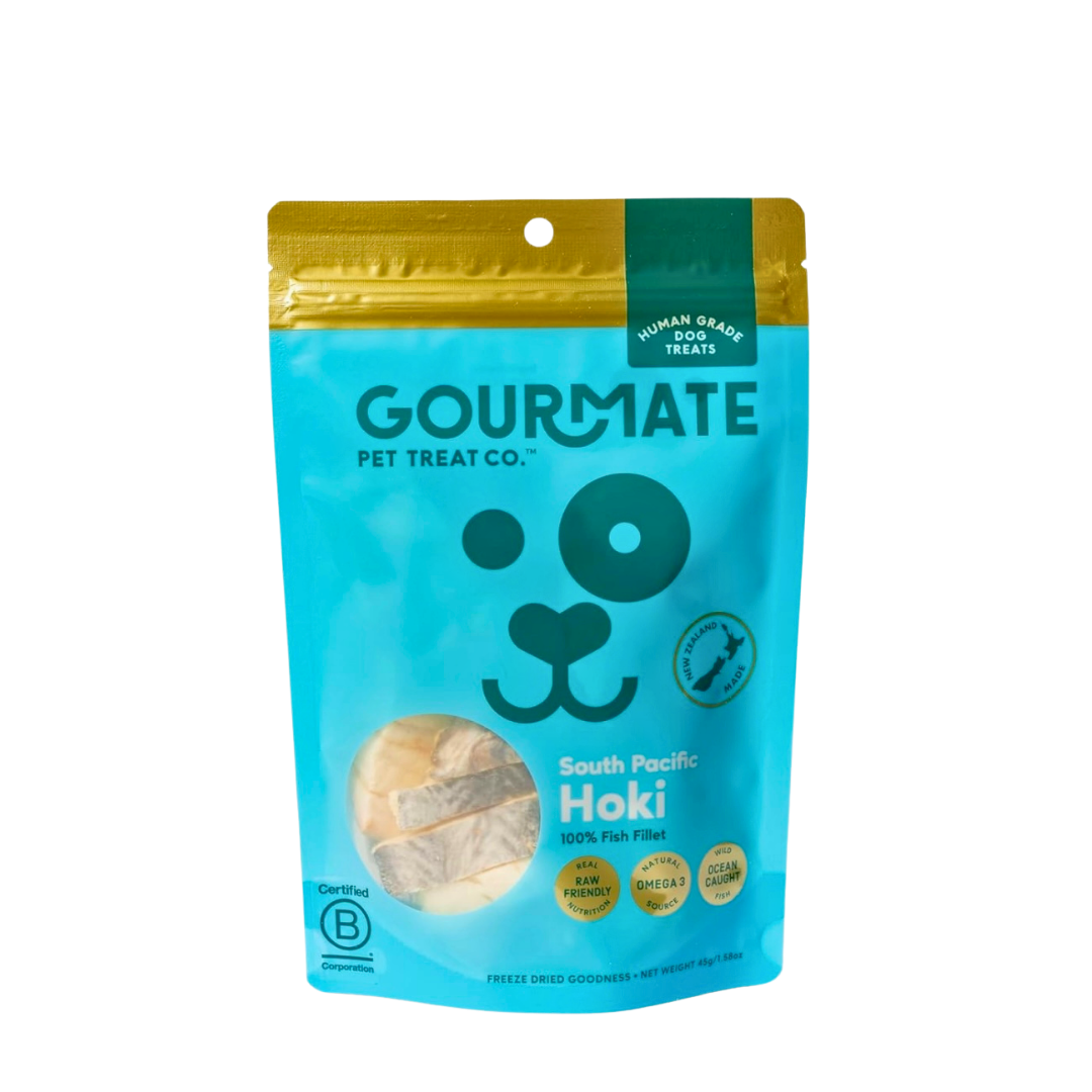 Gourmate South Pacific Hoki delivers clean, freeze-dried nutrition from the sea—supporting your dog’s skin, brain, and joints with every bite.
