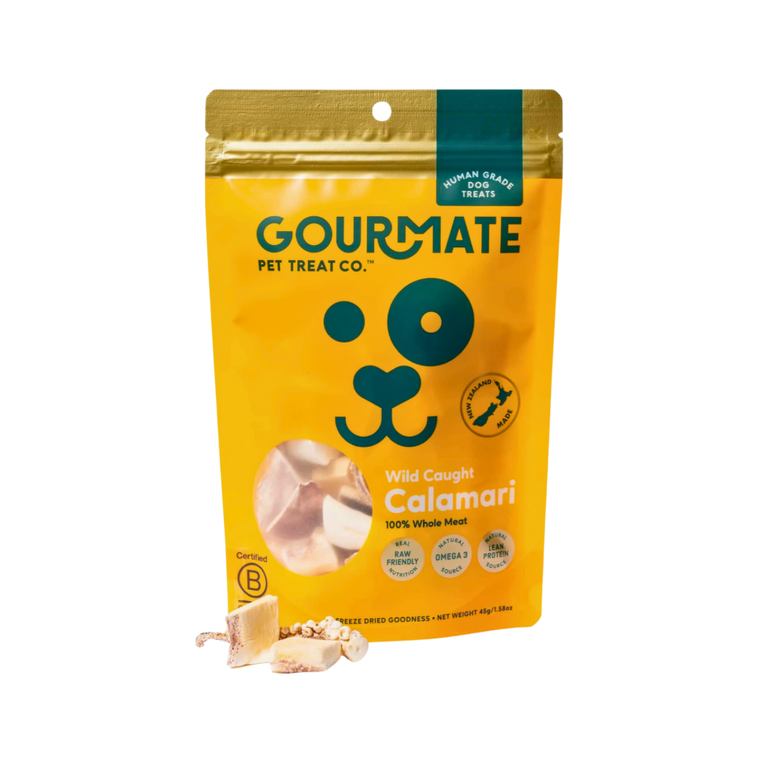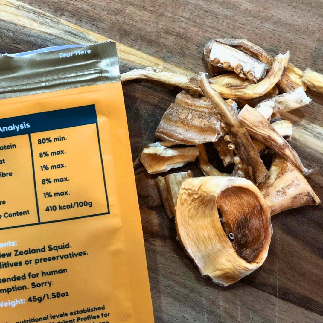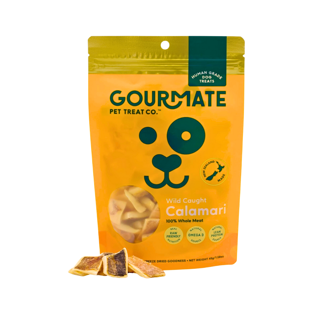 Gourmate Pet Treat Co. sources its squid from the pristine waters of New Zealand, ensuring the highest quality and sustainability standards. By choosing sustainably caught squid, these treats support your dog’s health while contributing to environmentally friendly fishing practices and marine conservation efforts.