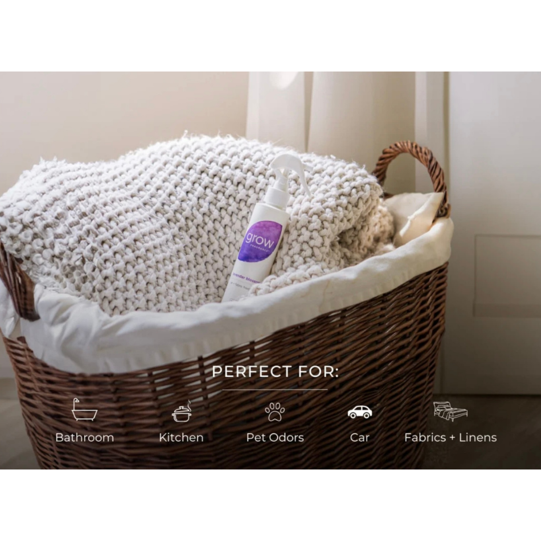 Create a peaceful atmosphere in your home with the Grow Fragrance Lavender Blossom Air + Fabric Spray—a soft, relaxing blend of calming lavender, delicate peony, and a touch of citrus. It’s floral without being overpowering, grounding without being heavy—and completely free from synthetic fragrance or harsh chemicals.