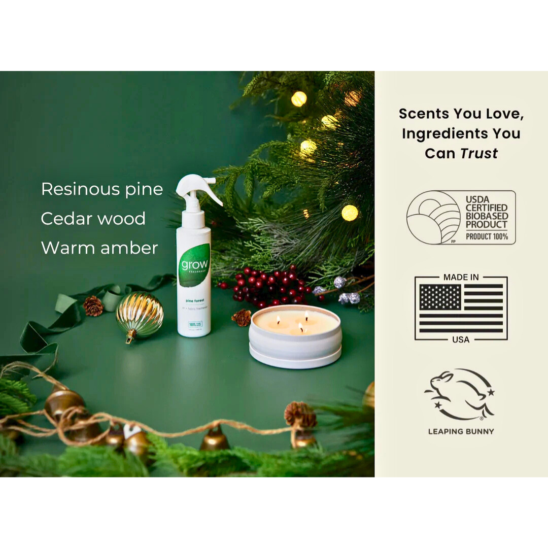 Bring the calming energy of the forest into your home with the Grow Fragrance Palo Santo Pine 3-Wick Candle—a clean, woodsy scent that blends fresh evergreens, warm cedarwood, and subtle amber for a grounding, restorative experience. It’s earthy yet uplifting, like a peaceful walk through pine-covered trails after a light winter rain.