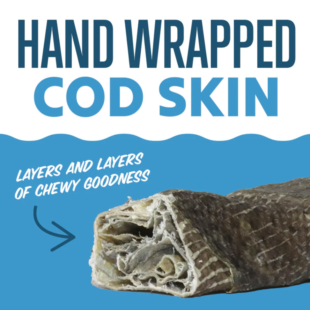 These chew sticks offer more than just a tasty treat. The Omega-3s found in cod skin help reduce inflammation and support heart and immune health, while the chewy texture naturally helps clean your dog’s teeth, reducing plaque and promoting better oral hygiene. Plus, they are an excellent source of lean protein, making them a nutritious choice for dogs of all ages and sizes.
