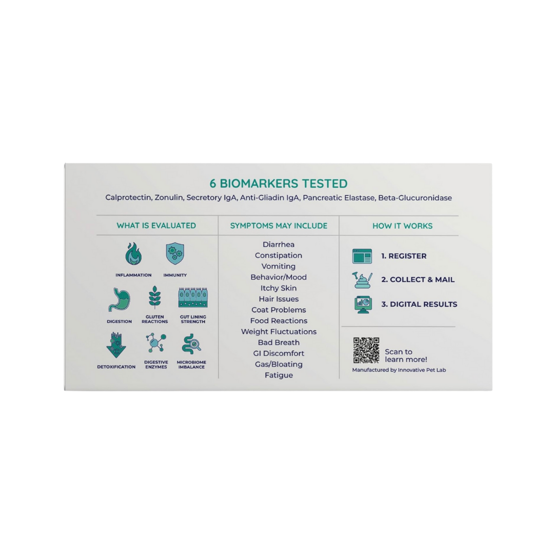 Does your dog have chronic skin issues, itchy paws, loose stools, or signs of food sensitivities? These symptoms often trace back to one thing: gut dysfunction. The Comprehensive GutCheck from Innovative Pet Lab is an at-home stool test that evaluates six key biomarkers tied to your dog’s gut integrity, immune health, and digestion—offering real data to help you support their health from the inside out.