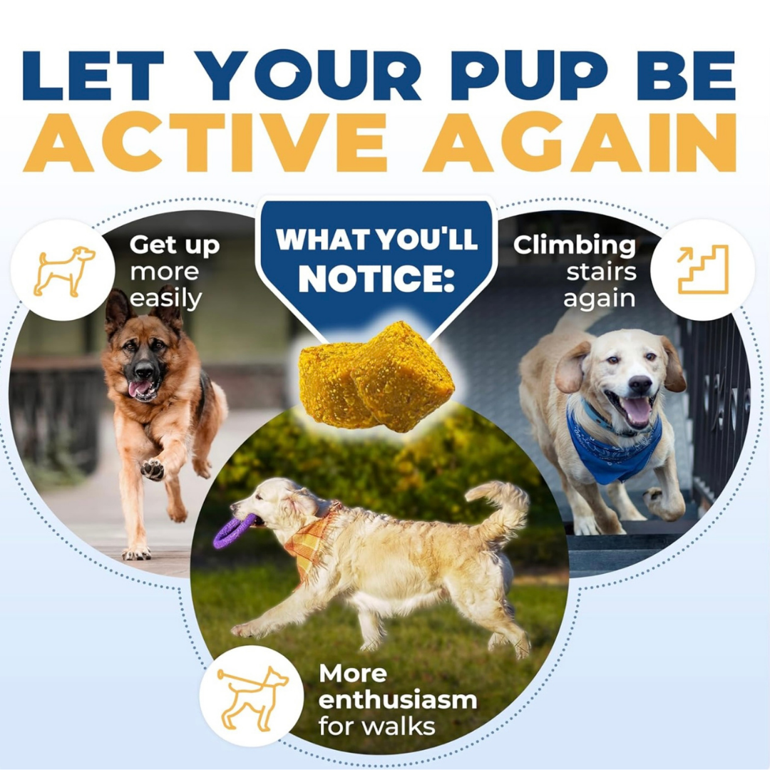 These chews go beyond surface-level relief. Each ingredient is chosen for its ability to target the root mechanisms behind joint degeneration—helping your dog stay active, comfortable, and mobile at every age.