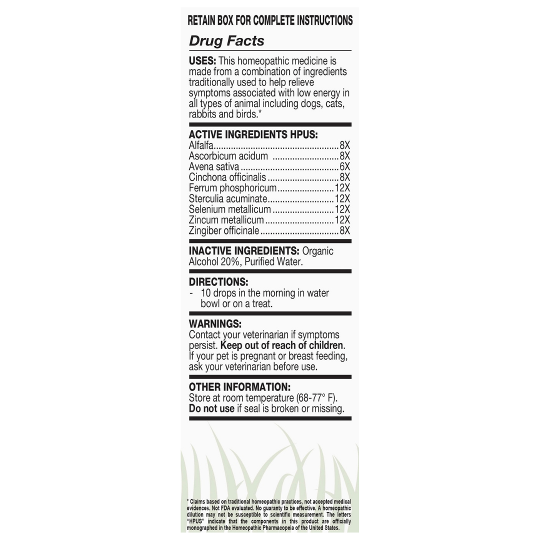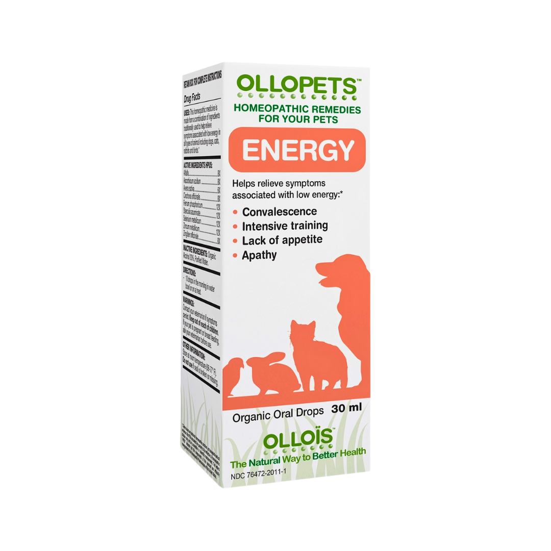 Ollopets Energy is a gentle homeopathic supplement designed to help support your dog’s natural energy levels, encourage recovery, and promote resilience. This non-toxic blend works with the body’s natural systems to improve stamina, strengthen nutrient utilization, and restore balance—without stimulants or harsh additives.