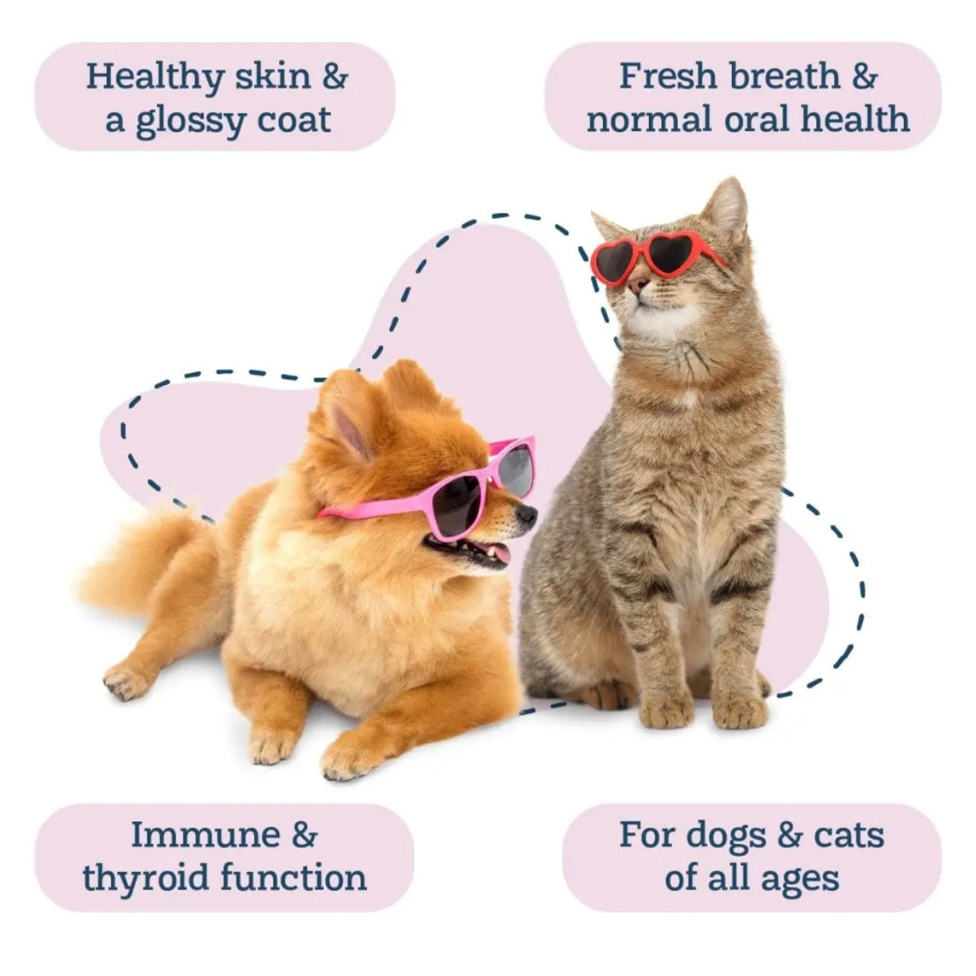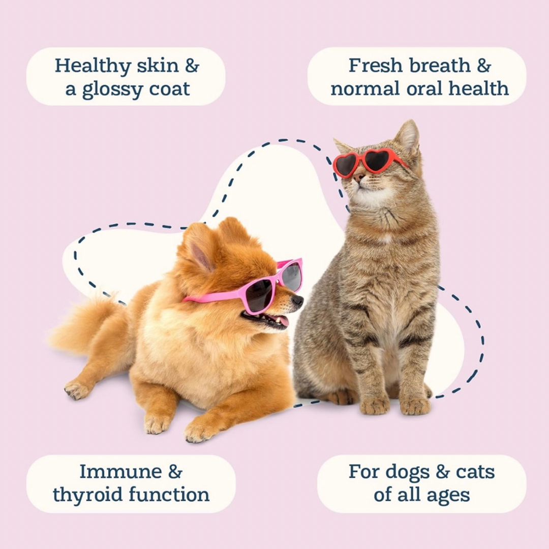 Sprinkle over your dog’s food daily. Adjust dosage based on weight, and consult your integrative vet if your dog has an existing thyroid condition.