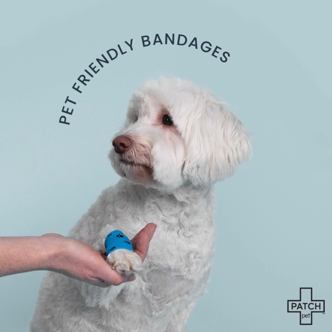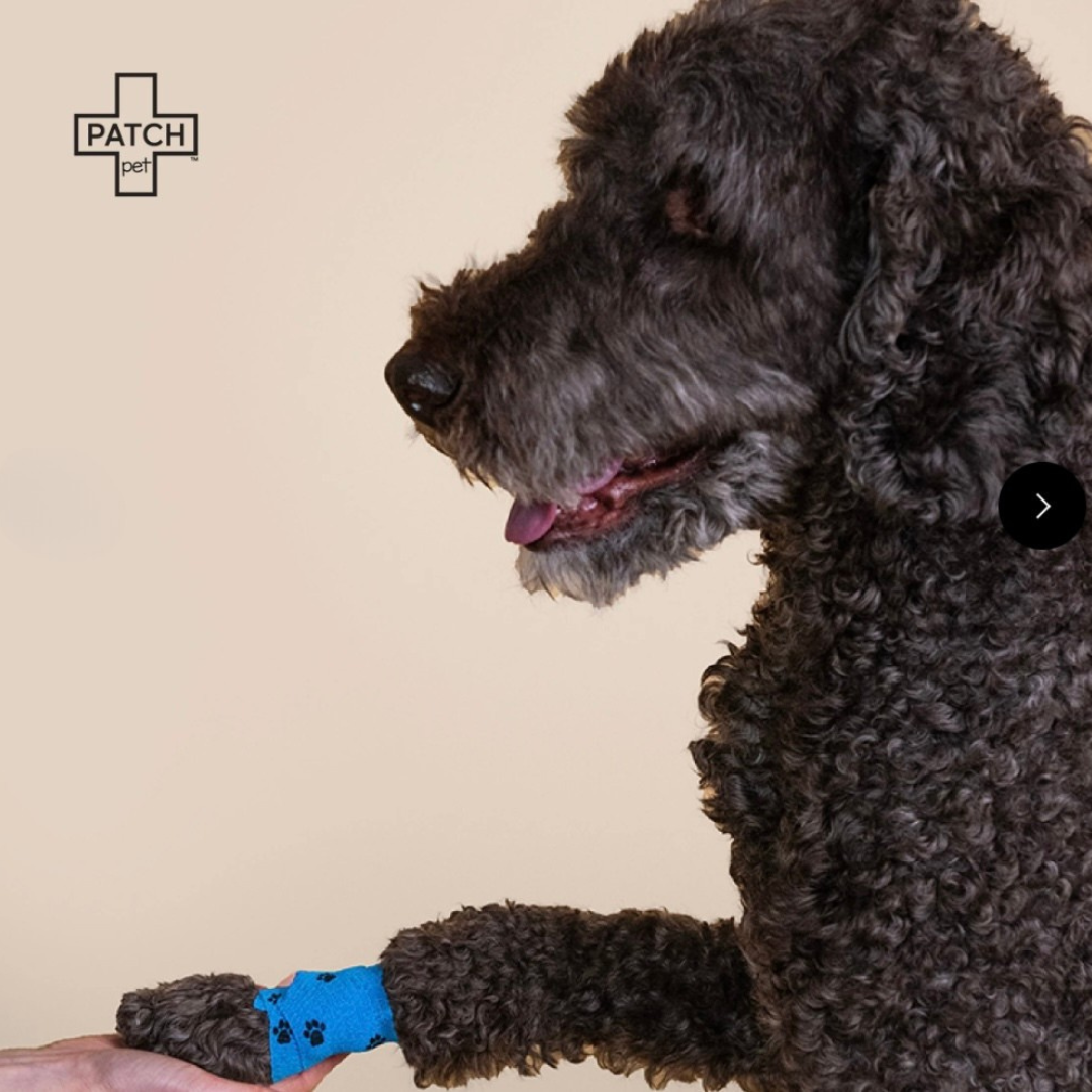 - PATCH PET Cohesive Wrap Bandages (Large & Small) – Made with cotton-based fibers, completely plastic-free, and self-adhering without synthetic glue, these bandages secure wounds without pulling fur or restricting circulation.