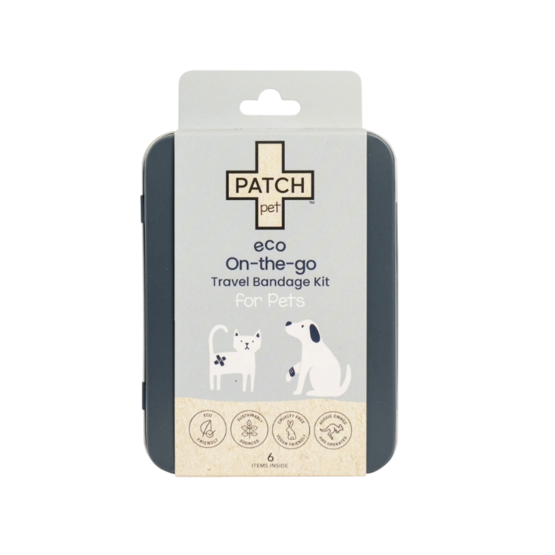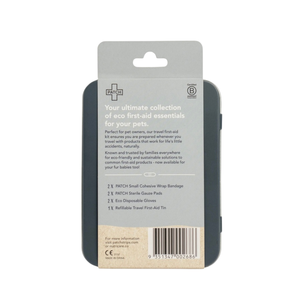 Accidents don’t just happen at home—whether you're on a hike, at the park, or traveling, having a lightweight, eco-friendly first-aid solution on hand can make all the difference. The PATCH PET Eco On-The-Go Travel Bandage Kitis a compact, plastic-free, and sustainable wound care kit designed to help you quickly and effectively address minor cuts, scrapes, or injuries no matter where you are.